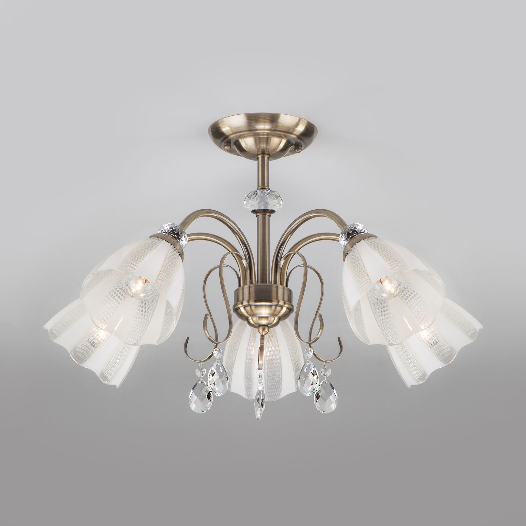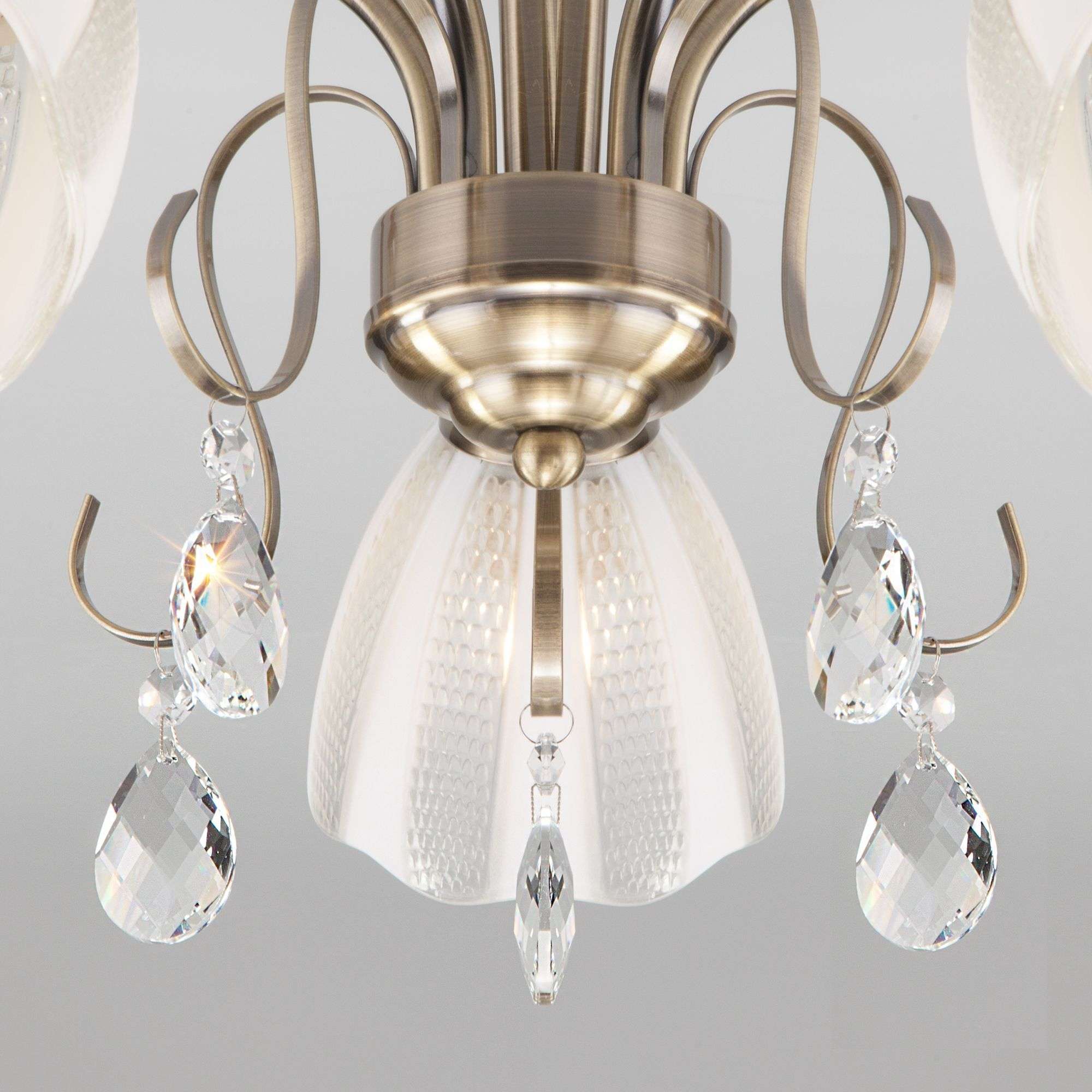 Потолочный светильник с хрусталем 30155/5 античная бронза из коллекции Floranse предназначена для создания основного освещения в современных и классических интерьерах. Плавные линии каркаса, хрустальные подвески и плафоны в форме бутонов тюльпана придают люстре неповторимый шарм. Люстра прекрасно впишется в интерьер гостиной, спальни или столовой, оформленных в классическом или современном стиле. Она рассчитана на площадь освещения 10 м²