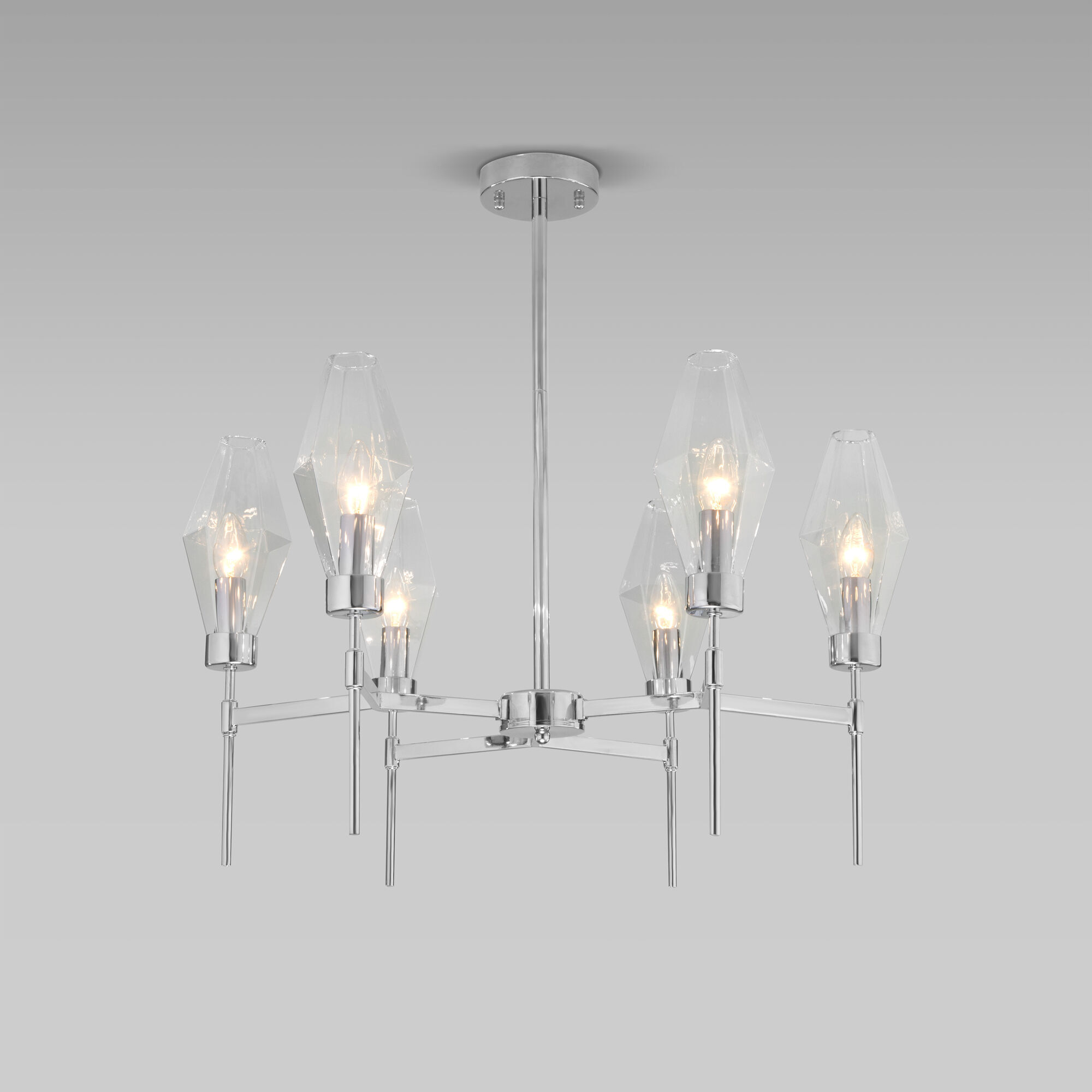 Оригинальная люстра Prism объединяет в себе невероятную воздушность и строгую геометрию форм. Шесть невесомых прозрачных плафонов ручной работы идеально дополнены тонкими гранями металлической арматуры в цвете хром. Ромбовидная форма модели позволяет свету рассеиваться, преломляясь в гранях стекла. Благодаря интересному дизайну потолочный светильник Prism станет изюминкой в декоре современного интерьера гостиной, спальни или кухни. Особенно выигрышно коллекция будет смотреться в пространстве, геометрия которого перекликается со строгими формами светильников.