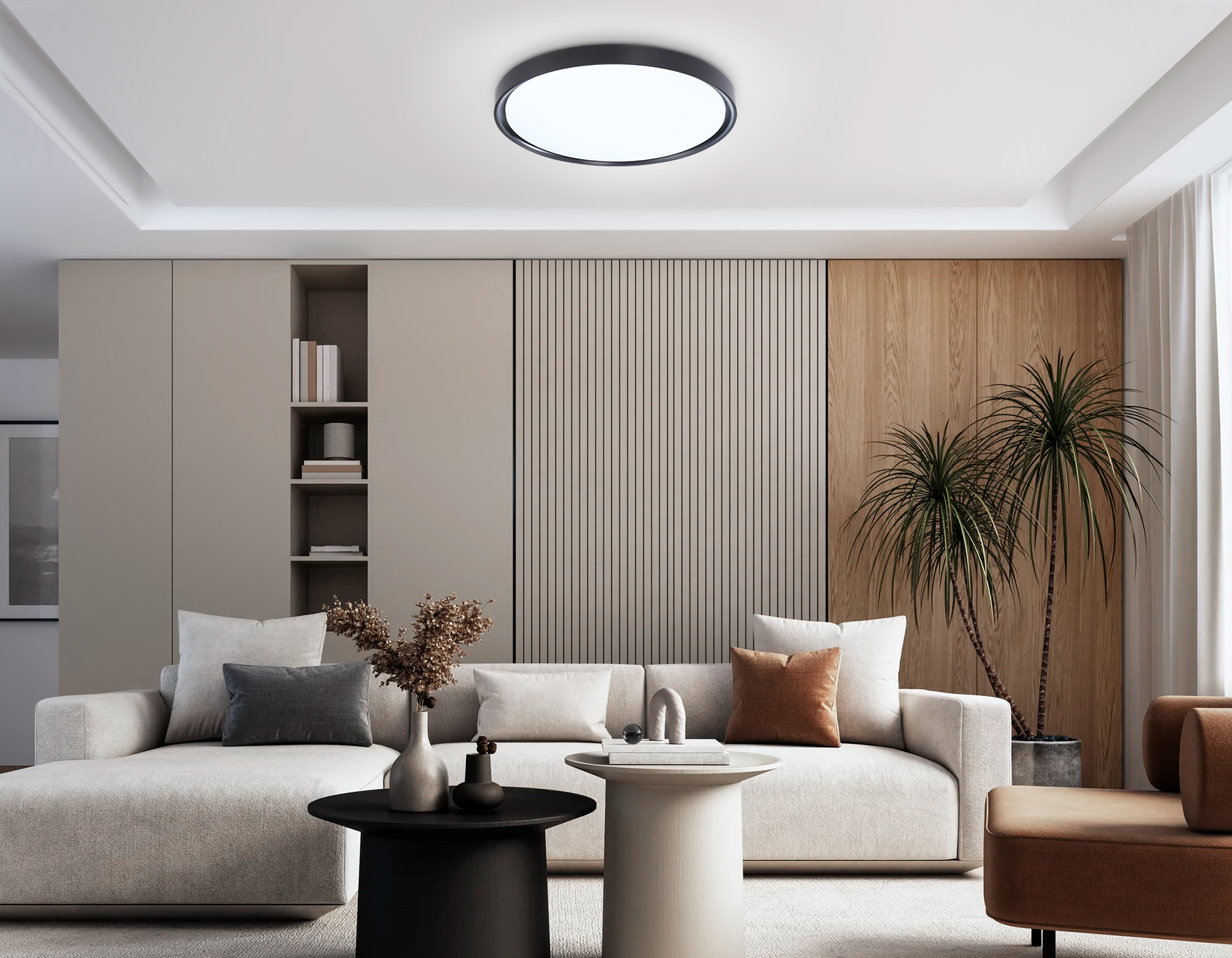 Потолочный светодиодный светильник FZ1248 BK черный IP54 30W 5000K D380*60 (Без ПДУ)