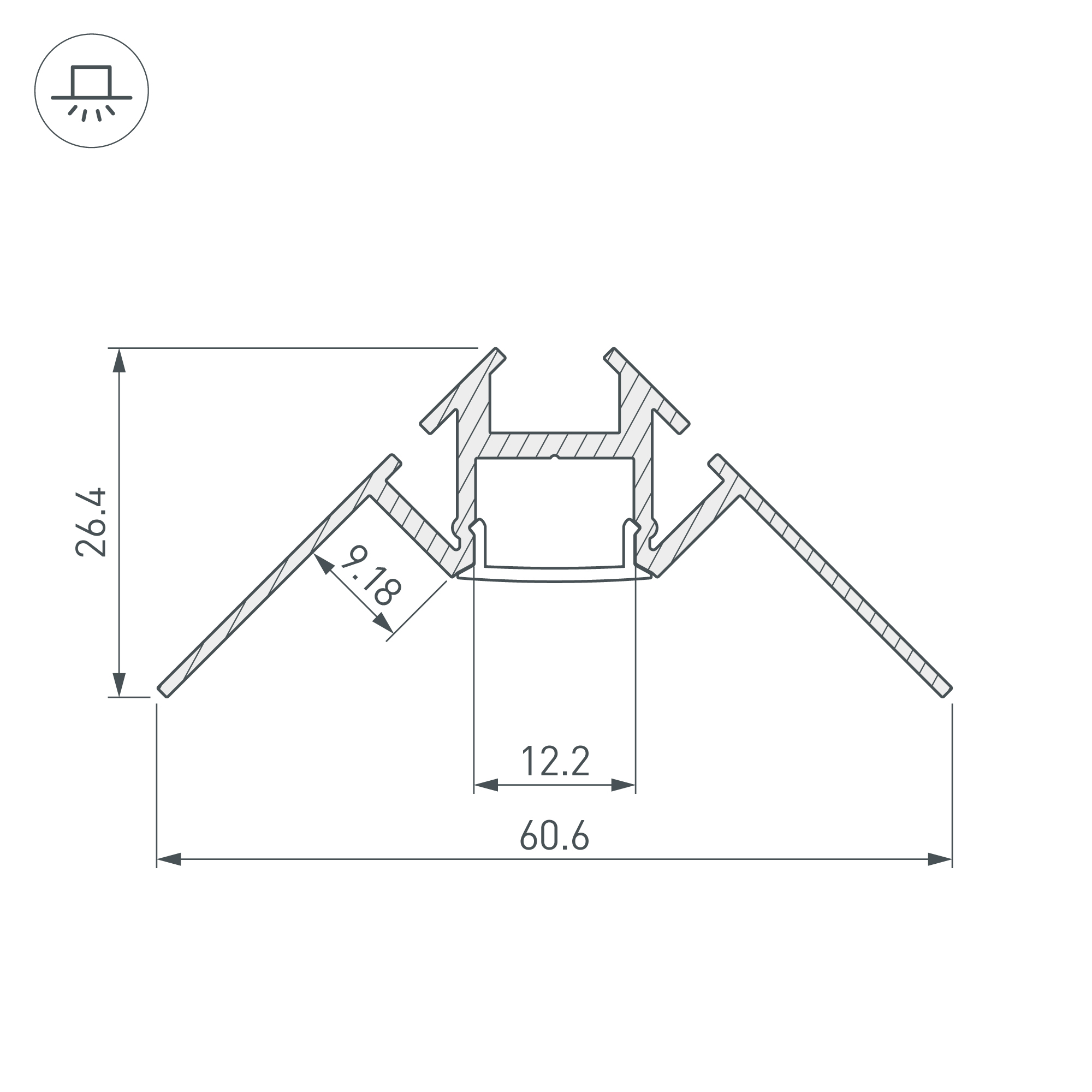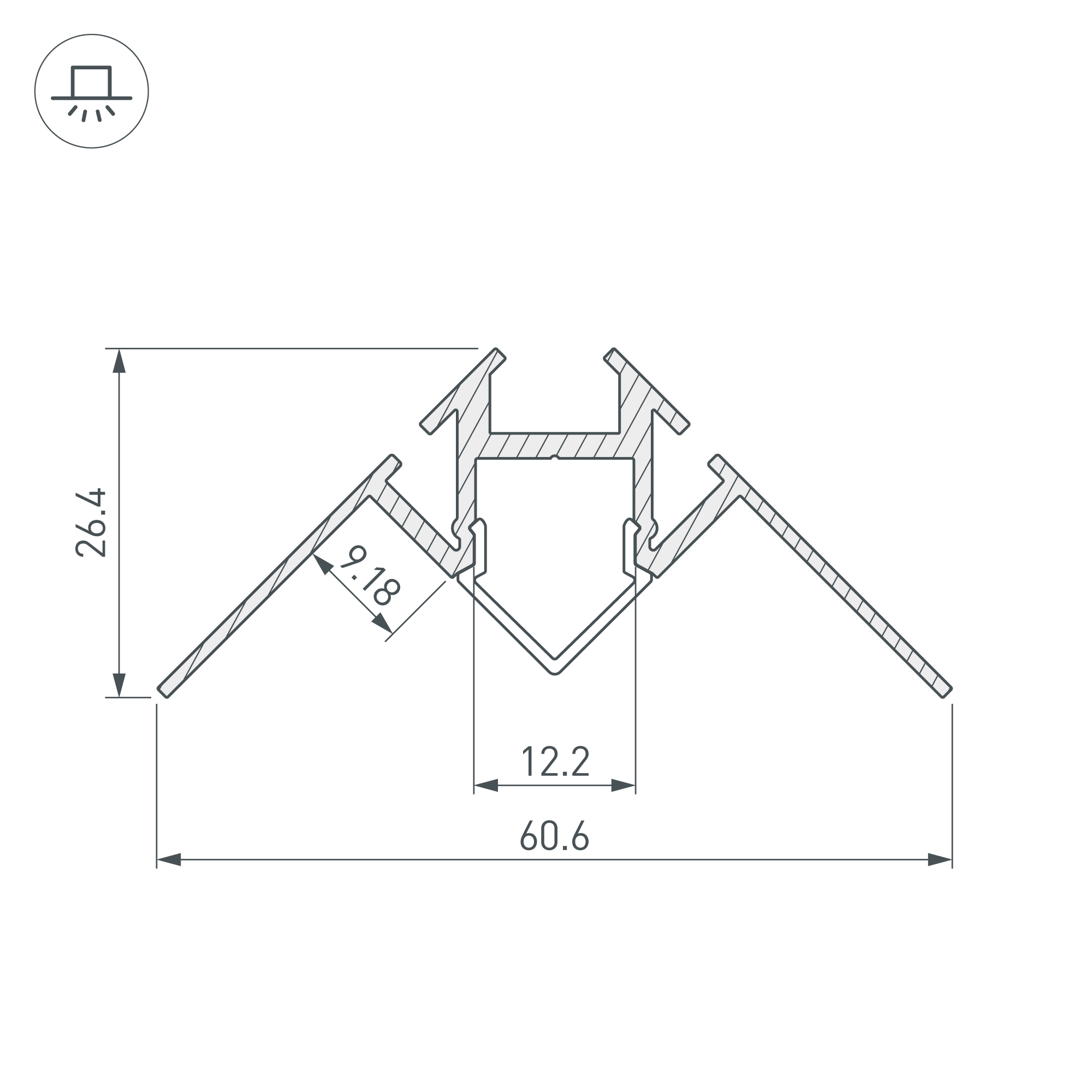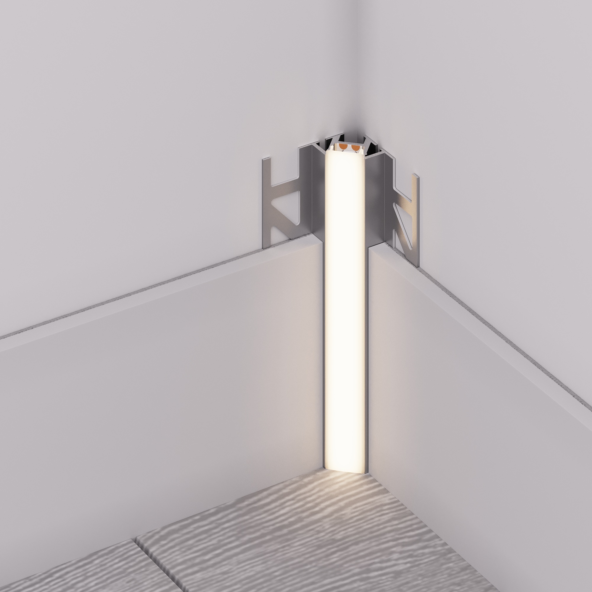 Алюминиевый анодированный угловой профиль для светодиодных лент и линеек, под строительную отделку или плитку. Фиксируется при помощи строительной смеси. Декоративная контурная подсветка внутренних углов стен и конструкций. Габаритные размеры (L×W×H): 2000x60,6x26,4 мм. Ширина площадки для ленты 12 мм. Экраны, заглушки и другие аксессуары приобретаются отдельно. Цена за 1 метр.