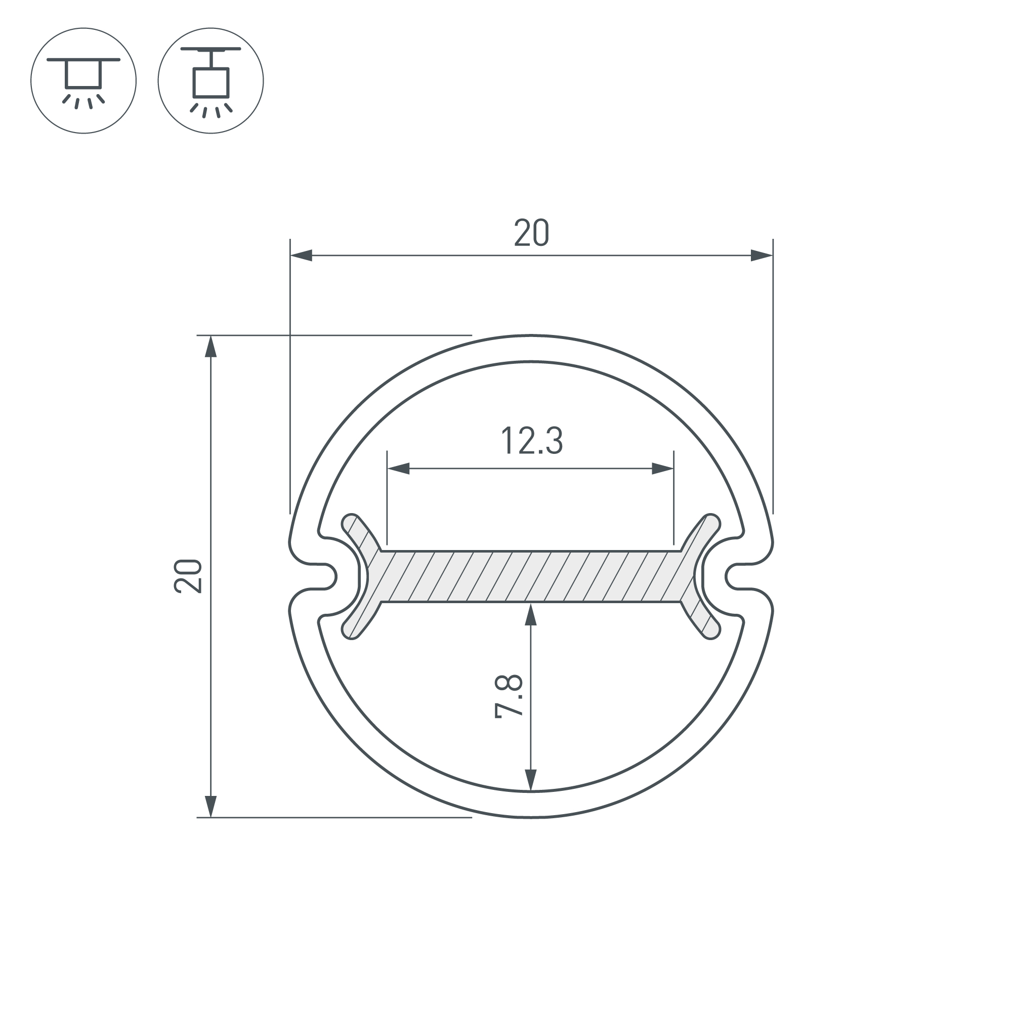 Профиль ARH-ROUND-D20-DUAL-2000 ANOD (Arlight, Алюминий)