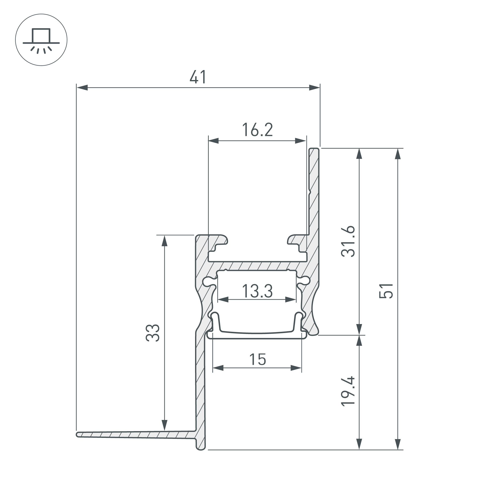 Алюминиевый встраиваемый профиль для светодиодных лент и линеек. Цвет-белый RAL9003 (порошковая окраска). Габаритные размеры (L×W×H): 2000х41х51 мм. Ширина площадки для ленты 13,3 мм. Экраны, заглушки и другие аксессуары приобретаются отдельно. Цена за 1 метр.