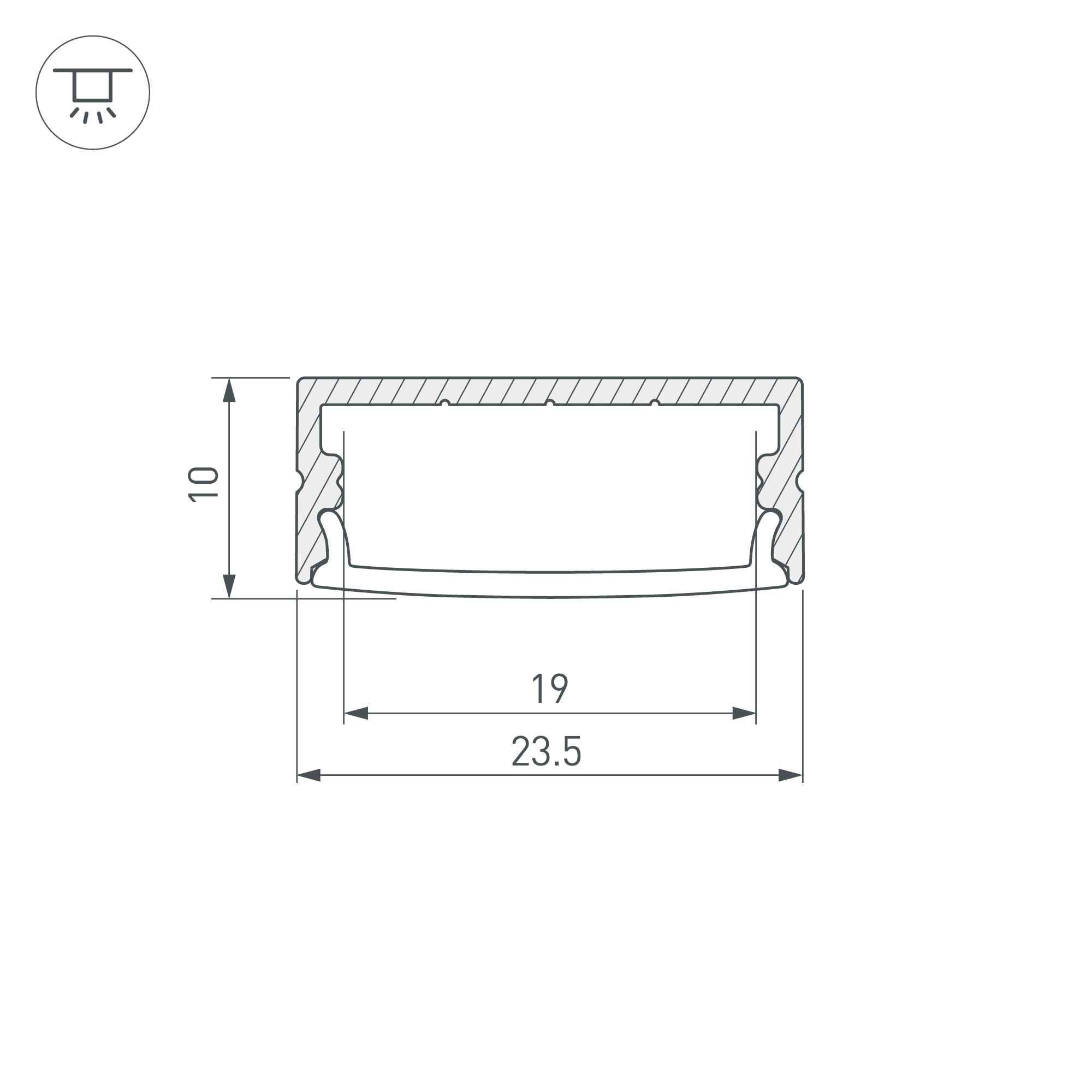 Алюминиевый анодированный накладной профиль для светодиодных лент и линеек. Габаритные размеры (L×W×H): 2000x23,5x10 мм. Ширина площадки для ленты 19 мм. Экраны, заглушки и другие аксессуары приобретаются отдельно. Цена за 1 метр.