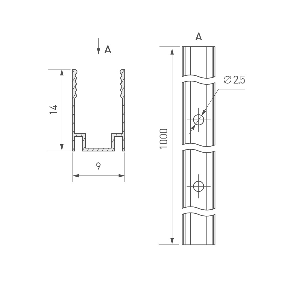 Профиль 1м из анодированного алюминия для гибкого неона AURORA сечения 16х8мм. Длина 1000 мм, ширина 9 мм.
