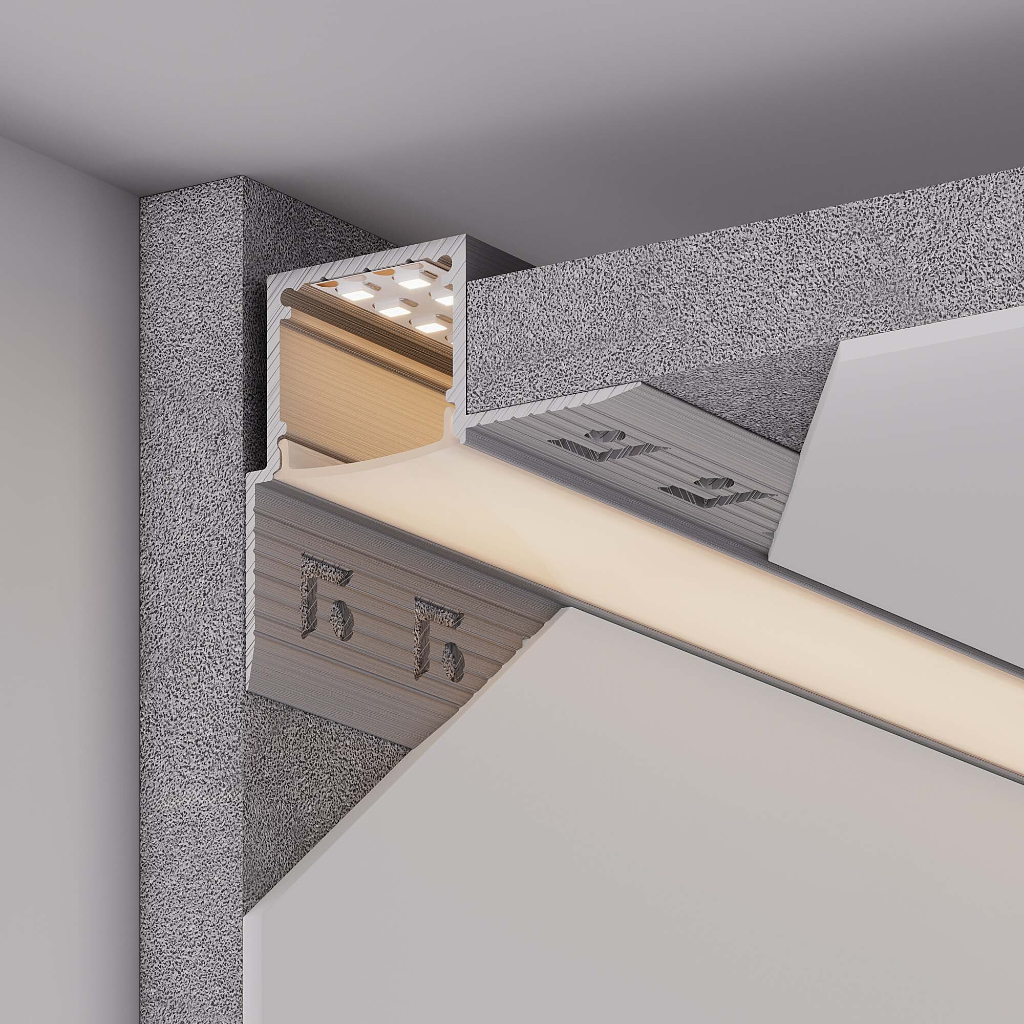 Алюминиевый профиль для светодиодных лент и линеек. Скрытая установка (под строительную отделку). Габаритные размеры (L×W×H): 2000x46,2x40 мм. Ширина площадки для ленты 14,6 мм. Экраны, заглушки и другие аксессуары приобретаются отдельно. Цена за метр.