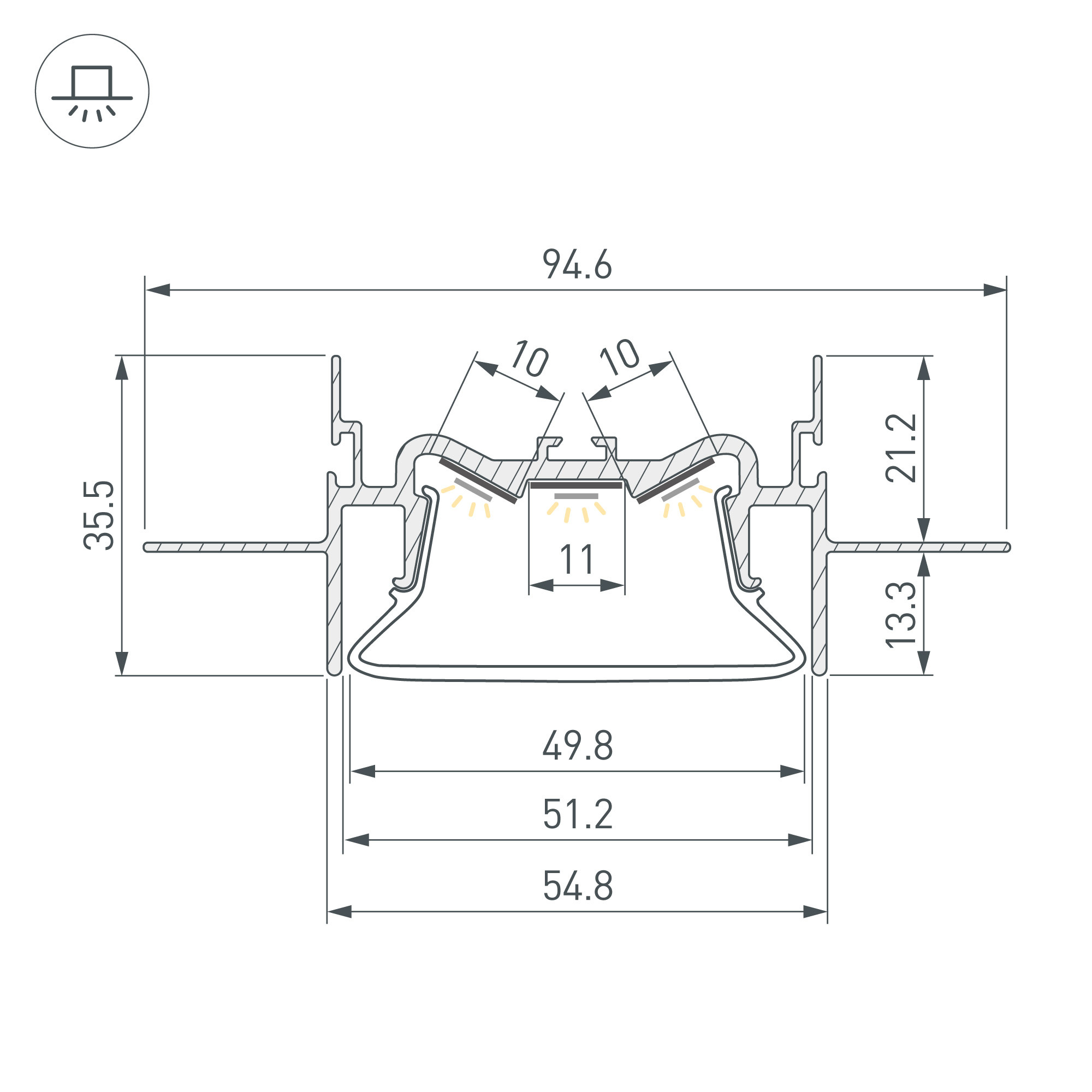 Профиль FOLED-50-CEIL-CENTER-2000 (Arlight, Алюминий)