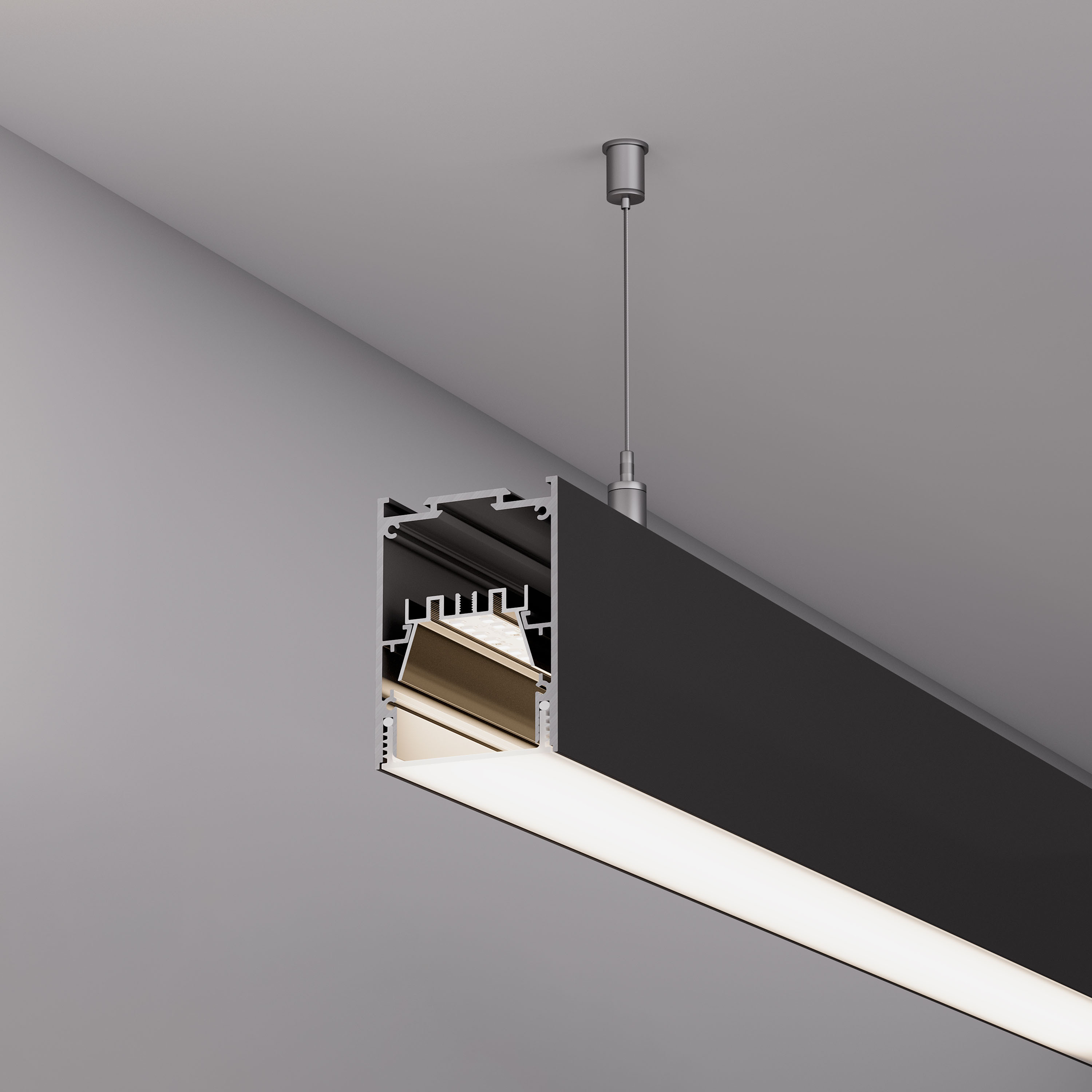 Алюминиевый профиль для светодиодных лент и линеек с возможностью герметизации до IP65. Цвет - чёрный (порошковая окраска), покрытие - зернистое. Габаритные размеры профиля (L×W×H): 2000x54x75 мм. Ширина площадки для ленты 16 мм. Экраны, заглушки и другие аксессуары приобретаются отдельно. Цена за 1 метр.