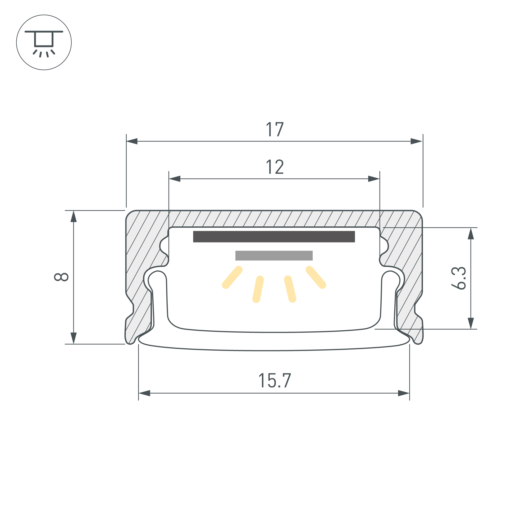 Алюминиевый анодированный накладной профиль для светодиодных лент и линеек. Габаритные размеры (L×W×H): 2000x17x8 мм. Ширина площадки для ленты 12 мм. Экраны, заглушки и другие аксессуары приобретаются отдельно. Цена за 1 метр. Для осуществления подвесного монтажа необходимо использовать подвесы совместно с держателями.