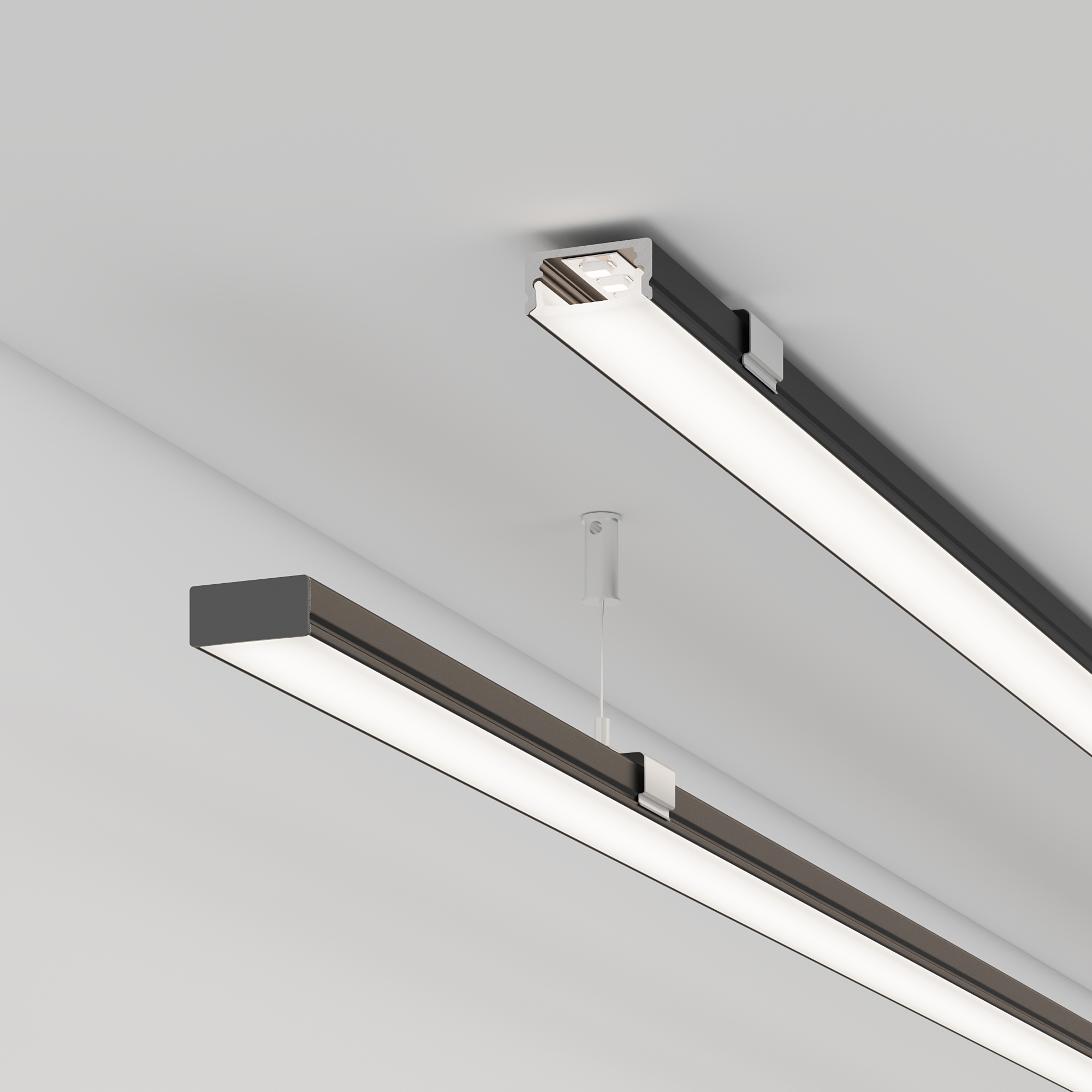 Алюминиевый анодированный накладной профиль для светодиодных лент и линеек. Цвет - черный. Габаритные размеры (L×W×H): 2000x17x8 мм. Ширина площадки для ленты 12 мм. Экраны, заглушки и другие аксессуары приобретаются отдельно. Цена за 1 метр. Для осуществления подвесного монтажа необходимо использовать подвесы совместно с держателями.