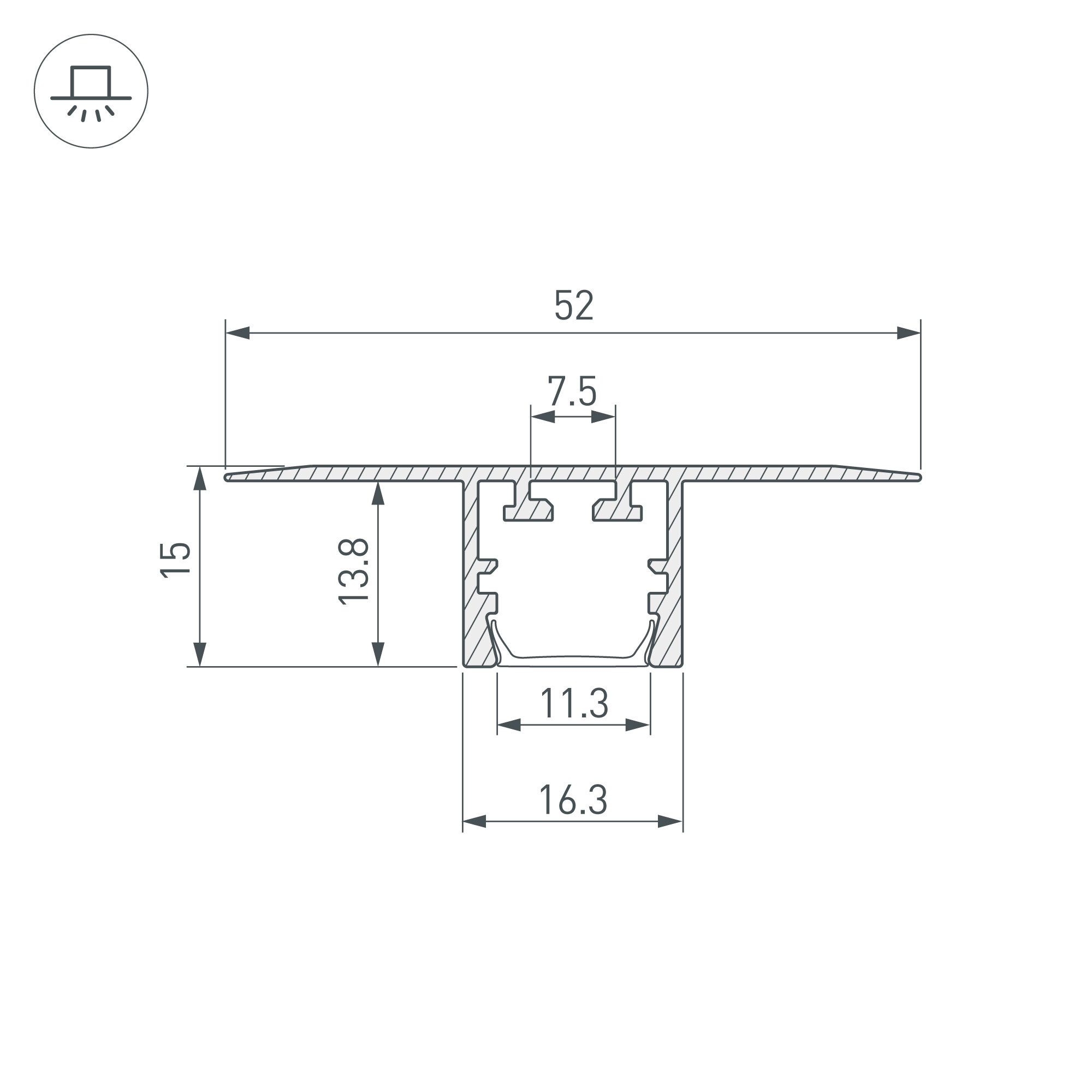 Алюминиевый профиль для светодиодных лент и линеек, встраиваемый в гипсокартон толщиной 12 мм, под строительную отделку. Позволяет создать линию света шириной 11 мм. без видимых частей алюминия. Монтируется между двумя листами гипсокартона. Совместим с профилем 035020. Габаритные размеры (L×W×H): 2000x52,2x15 мм. Ширина площадки для ленты 14 мм. Экраны, заглушки и другие аксессуары приобретаются отдельно. Цена за 1 метр.