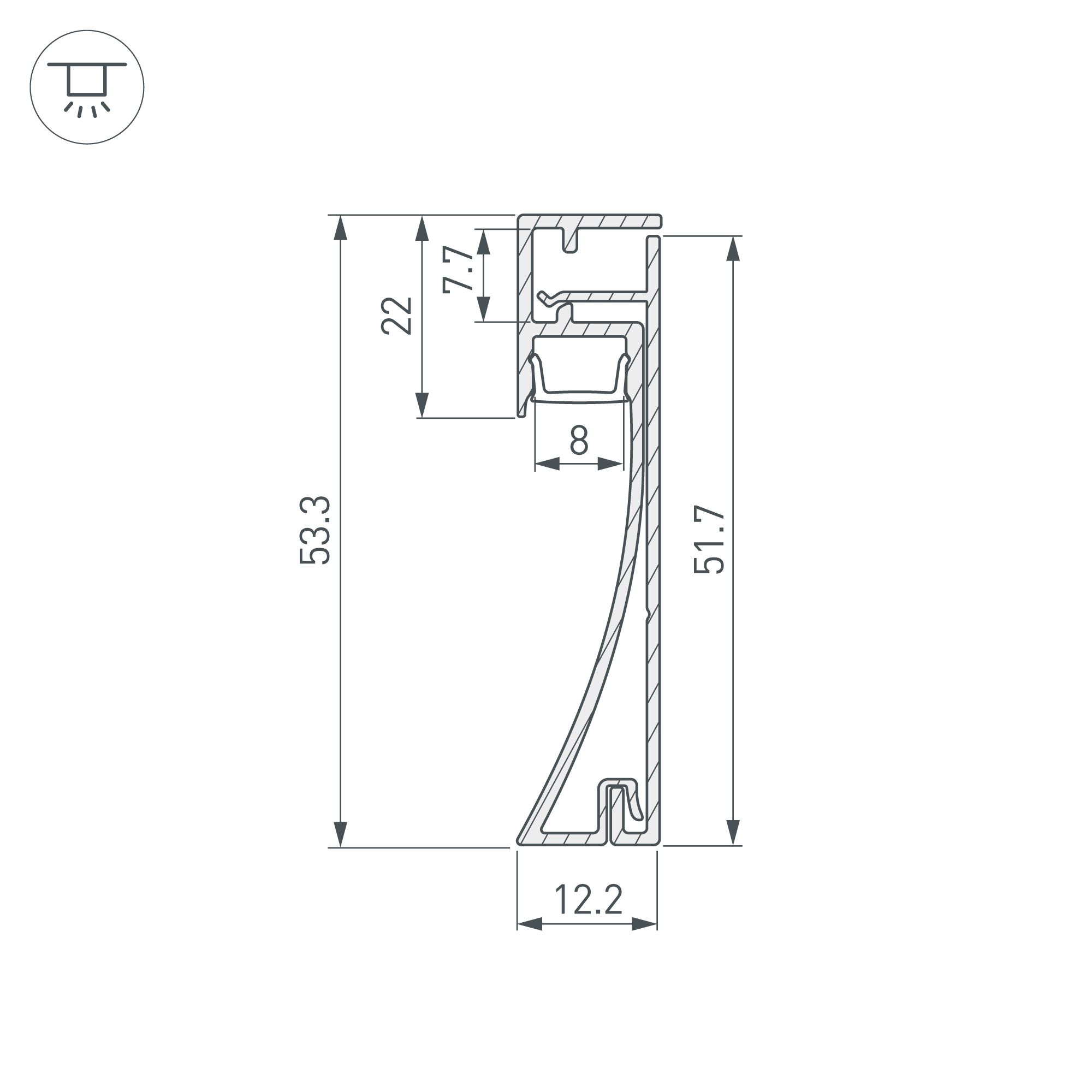 Алюминиевый накладной двухкомпонентный профиль-плинтус для светодиодных лент и линеек. Цвет - белый RAL9003 (порошковая окраска). Габаритные размеры (L×W×H): 2000x12,2x53,3 мм. Ширина площадки для ленты 8 мм. Аксессуары приобретаются отдельно. Цена за метр.