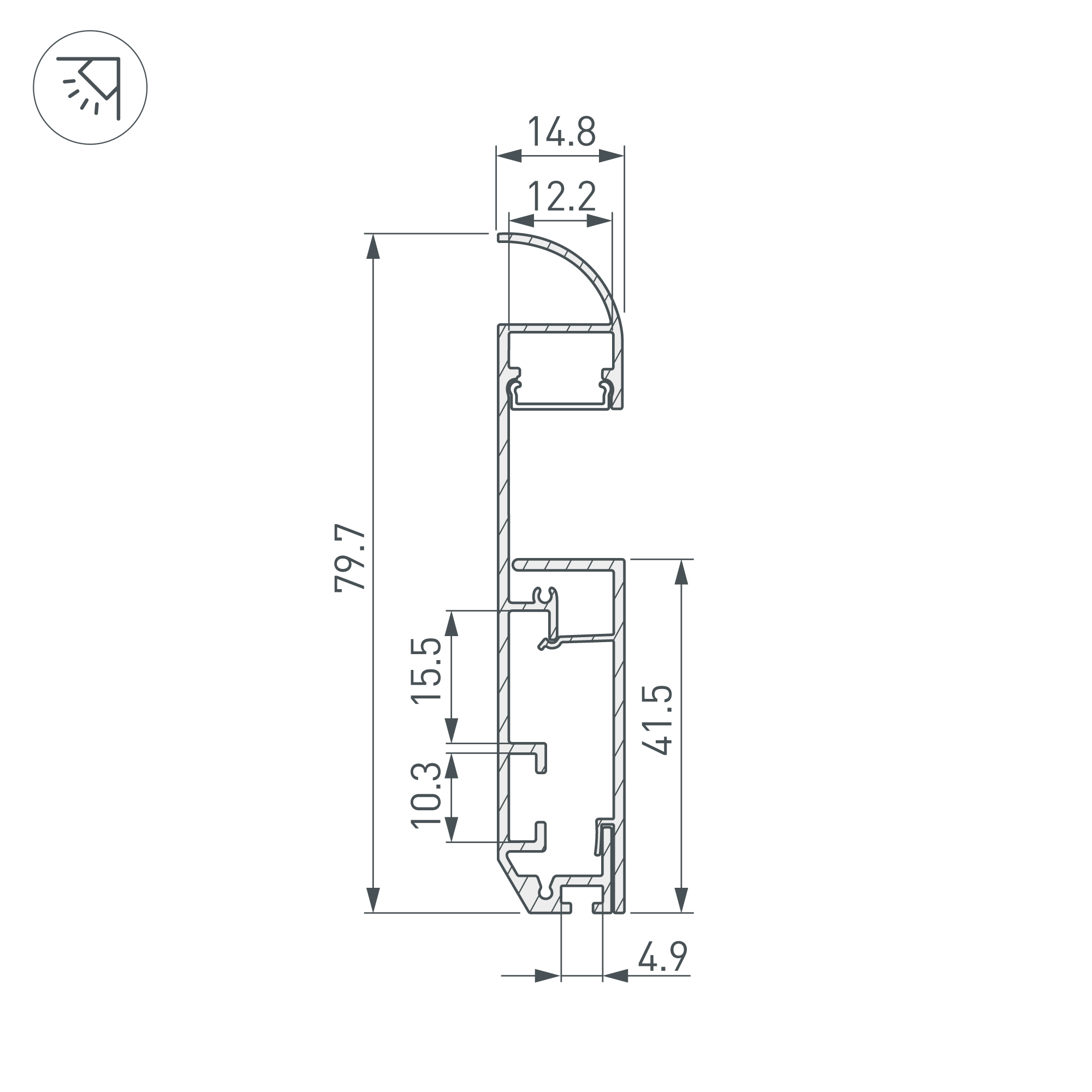 Алюминиевый накладной двухкомпонентный профиль-плинтус для светодиодных лент и линеек. Цвет - черный RAL9005 (порошковая окраска). Габаритные размеры (L×W×H): 2000x14,8x79,7 мм. Ширина площадки для ленты 12,2 мм. Аксессуары приобретаются отдельно. Цена за метр.
