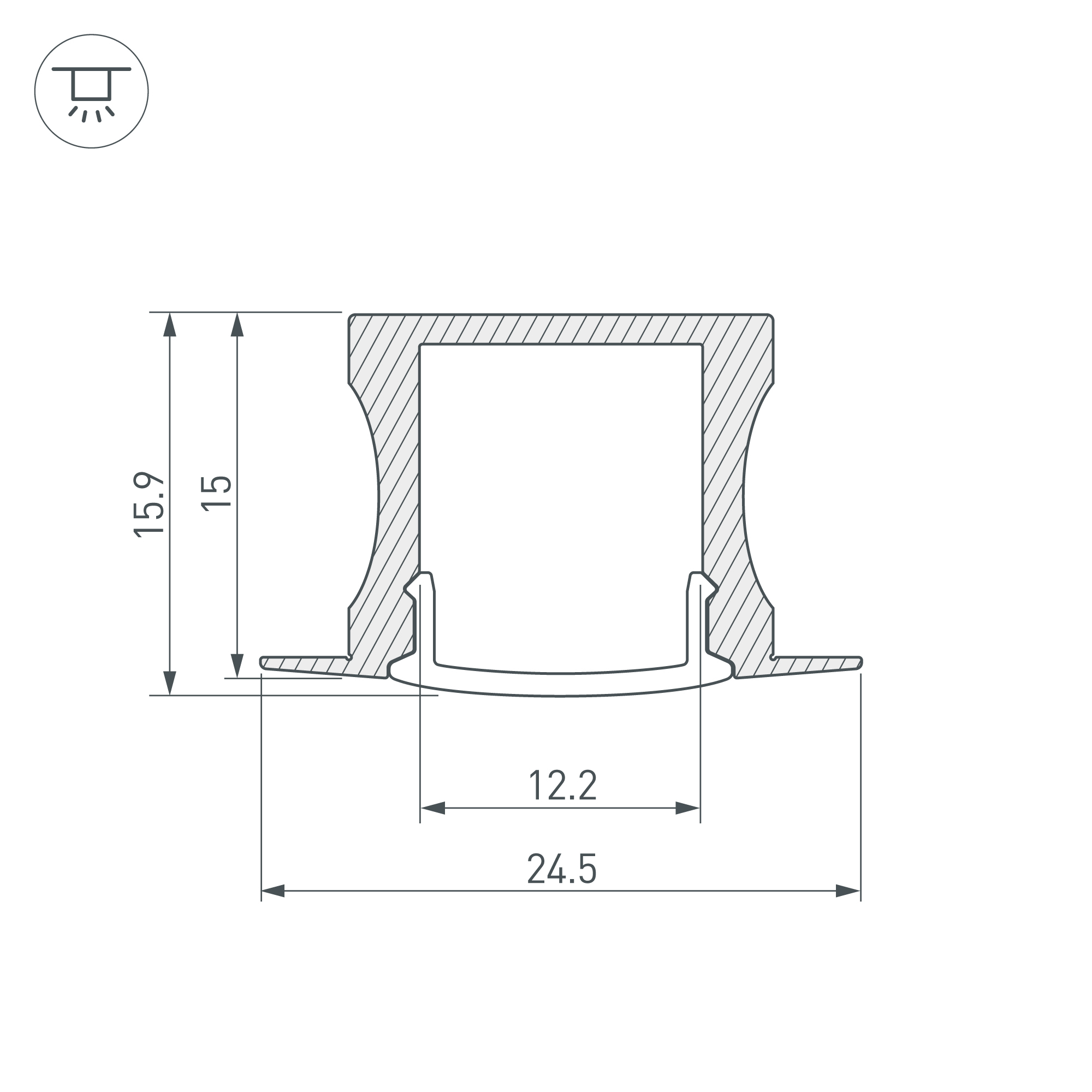 Комплект с экраном. Алюминиевый анодированный профиль для светодиодных лент и линеек. Габаритные размеры (L×W×H): 2000x24,5x15 мм. Ширина площадки для ленты 12,2 мм. Аксессуары приобретаются отдельно. Цена за комплект: профиль - 2 м, экран - 2 м.
