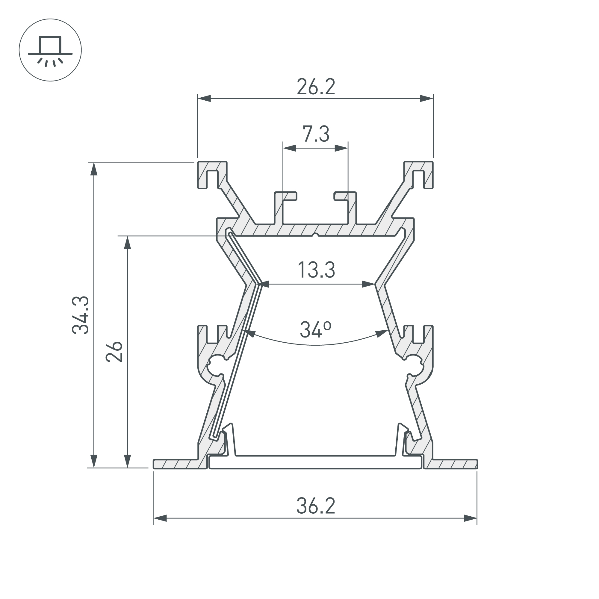 Поставка под заказ от 1 компл. Комплект с экраном. Алюминиевый анодированный профиль для светодиодных лент и линеек. Оснащён специальным отражателем, который увеличивает световой поток на 20%. Габаритные размеры (L×W×H): 2000x36,2x34,3 мм. Ширина площадки для ленты 13 мм. Аксессуары приобретаются отдельно. Минимальный заказ 1 комплект. Цена за комплект: профиль - 2 м, экран - 2 м, рефлектор длиной 2 м - 2 шт.