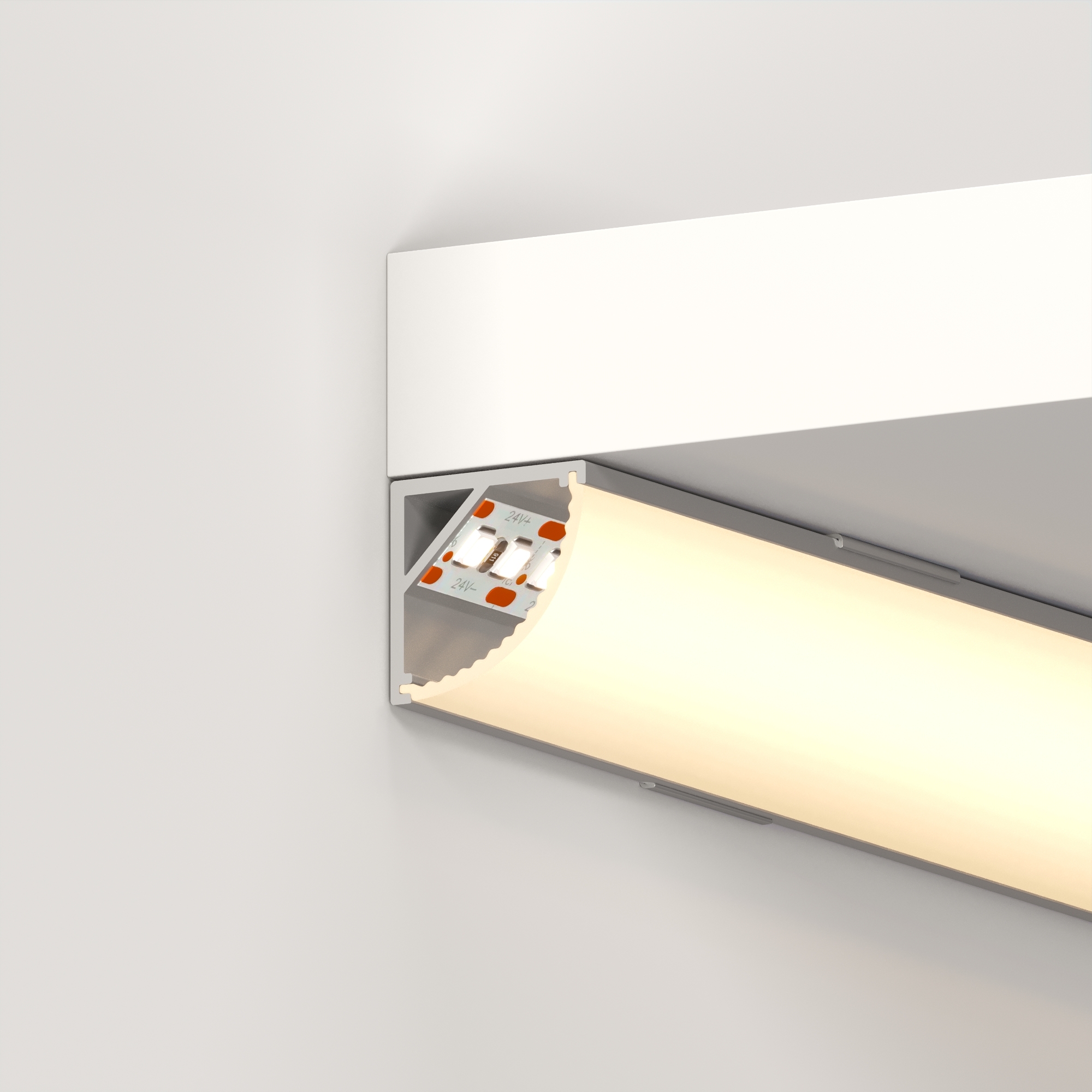 Комплект с матовым экраном (016932), заглушками (2 шт) и держателями (2 шт), в индивидуальной упаковке. Алюминиевый анодированный угловой профиль для светодиодных лент и линеек. Габаритные размеры (L×W×H): 2000x16x16 мм. Ширина площадки для ленты 10 мм. Цена за комплект: профиль - 2 м, экран - 2 м, заглушки - 2 шт. (одна - глухая, другая - с отверстием), держатели - 2 шт.
