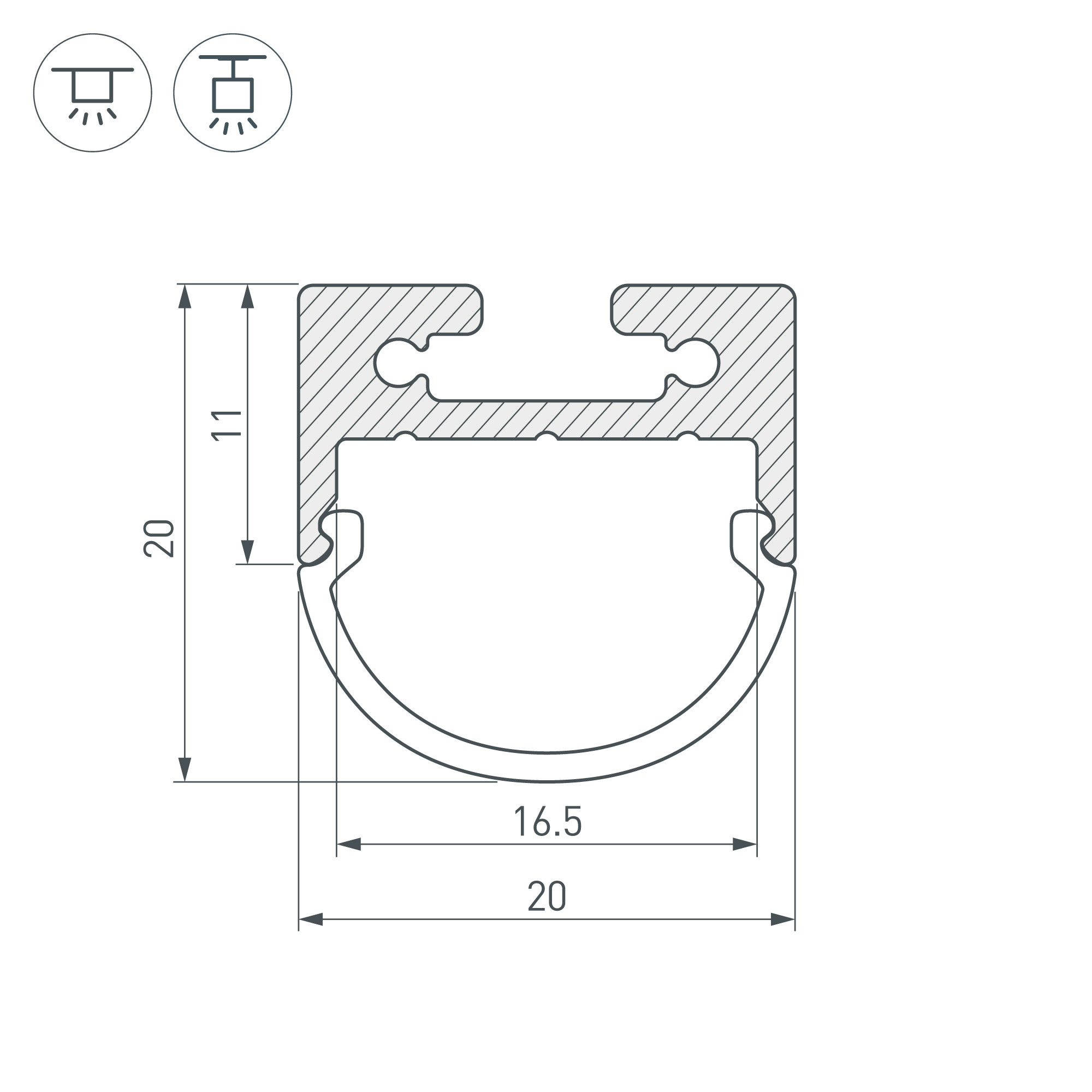 Комплект с экраном и заглушками (2 шт.). Алюминиевый профиль для светодиодных лент и линеек. Цвет - черный RAL9005 (порошковая окраска). Габаритные размеры профиля (L×W×H): 2500x20x11 мм. Габаритные размеры профиля с экраном (L×W×H): 2500x20x20 мм. Ширина площадки для ленты 16,5 мм. Аксессуары приобретаются отдельно. Цена за комплект: профиль - 2,5 м, экран - 2,5 м, глухая заглушка - 2 шт.
