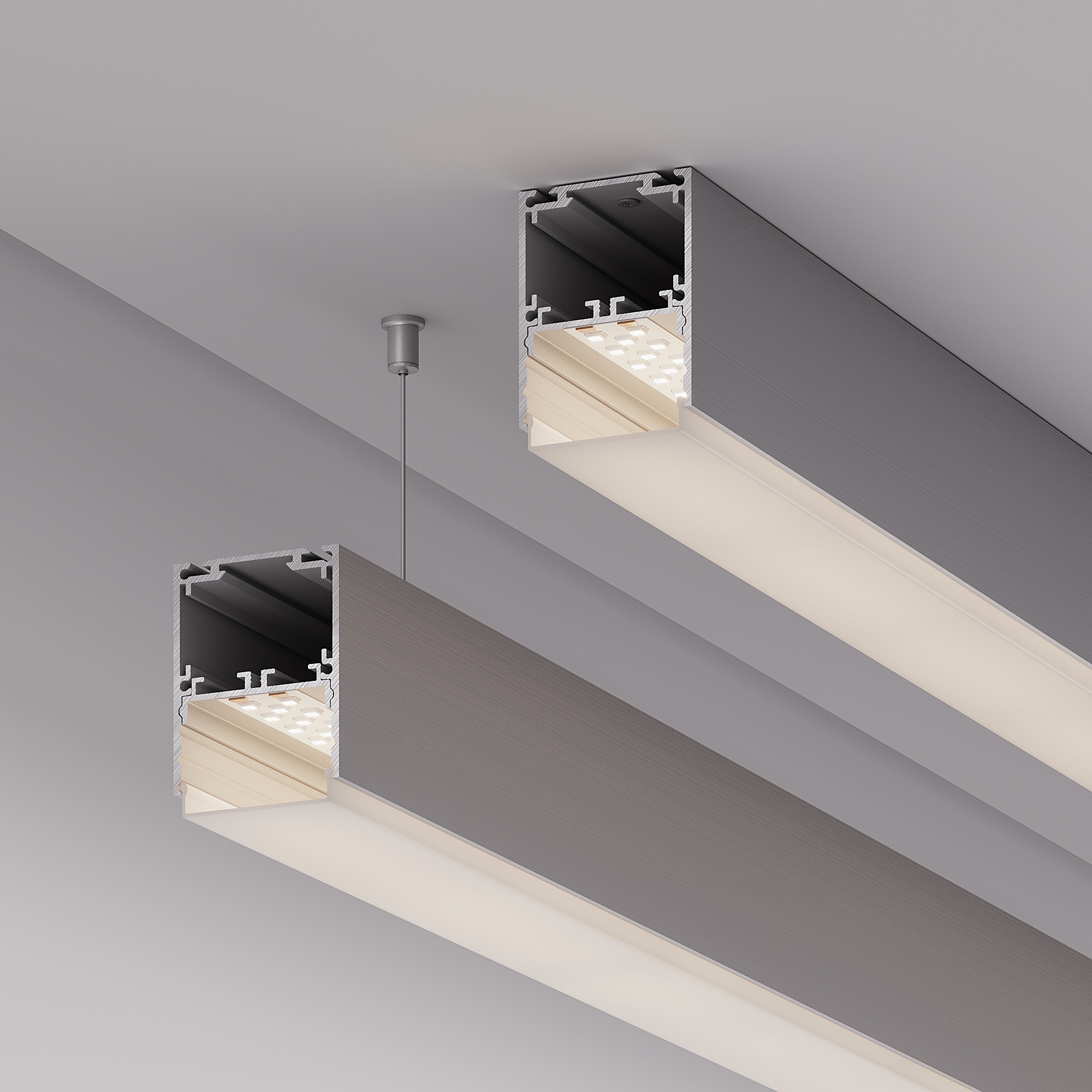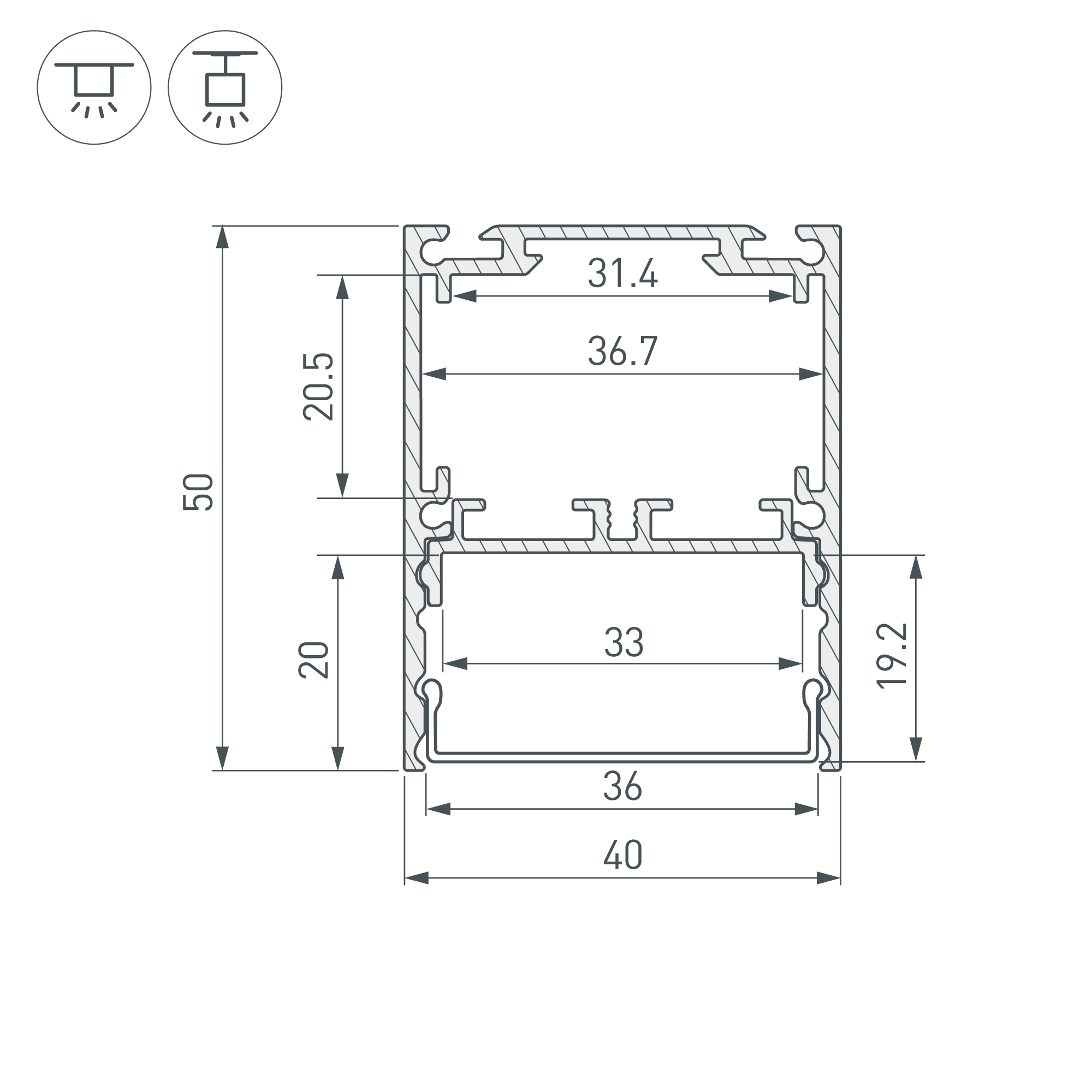 Алюминиевый анодированный профиль со съемной площадкой для светодиодной ленты в комплекте. Габаритные размеры (L×W×H): 2000x40x50,6 мм. Ширина площадки для ленты 33мм. Отсек для БП 31,4х20,5 мм. Возможность установки экрана на разных уровнях (три варианта). Экраны, заглушки и другие аксессуары приобретаются отдельно. Цена за 1 метр.