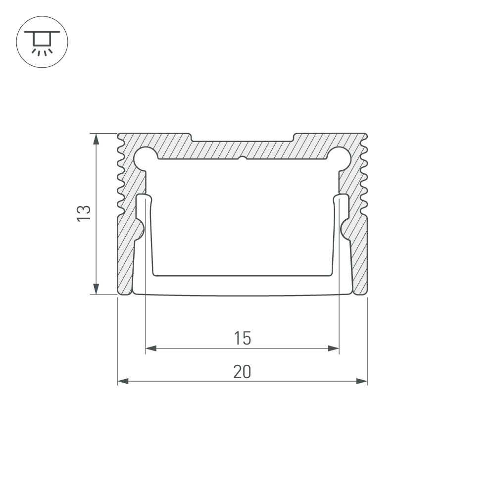 Алюминиевый анодированный профиль для светодиодных лент и линеек. Габаритные размеры (L×W×H): 3000x20x13 мм. Ширина площадки для ленты 15 мм. Экраны, заглушки и другие аксессуары приобретаются отдельно. Цена за 1 метр.