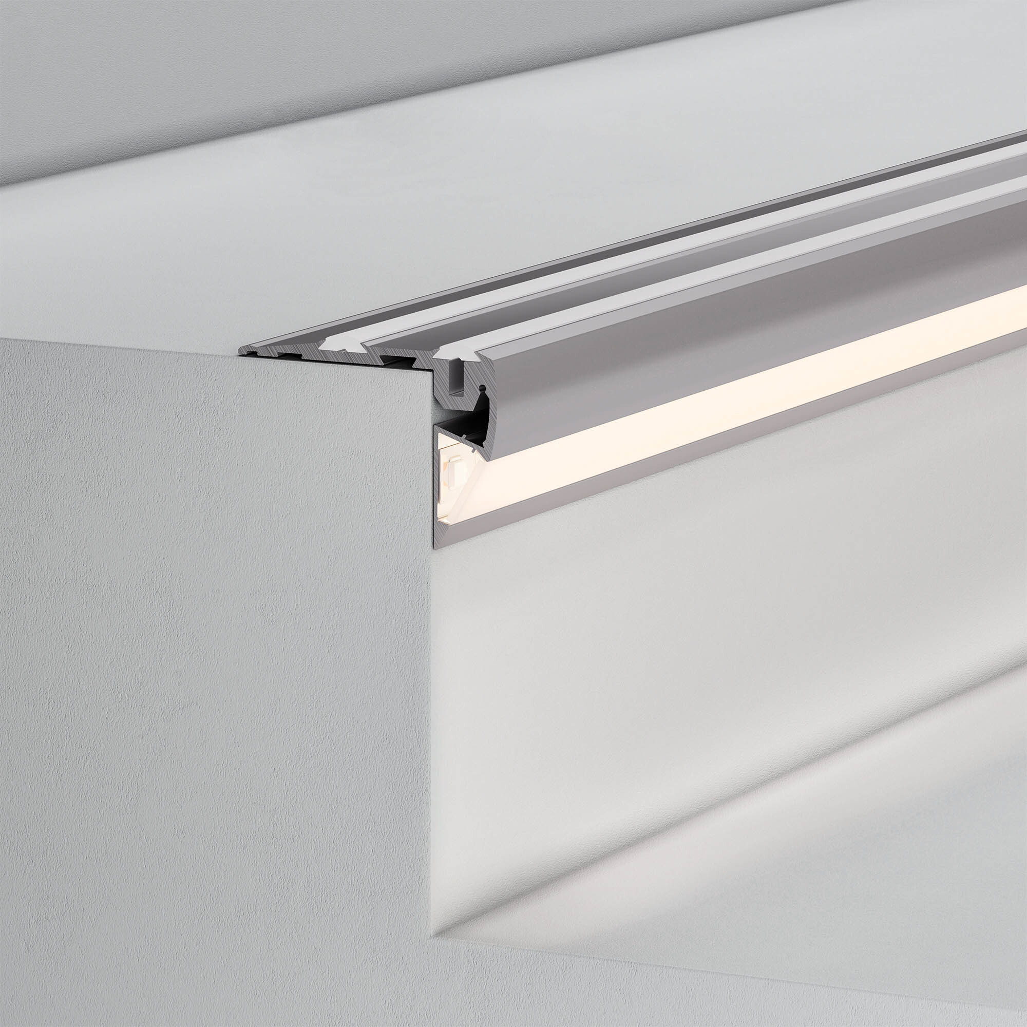 Алюминиевый анодированный высокопрочный профиль для подсветки ступеней. Верхняя и фронтальная широкая линии подсветки. Антискользящие прокладки в комплекте. Габаритные размеры (L×W×H): 2000x80x56 мм. Ширина площадок для лент: 10 мм (верхняя подсветка) и 11 мм (фронтальная подсветка). Экраны, заглушки и другие аксессуары приобретаются отдельно. Цена за 1 метр.
