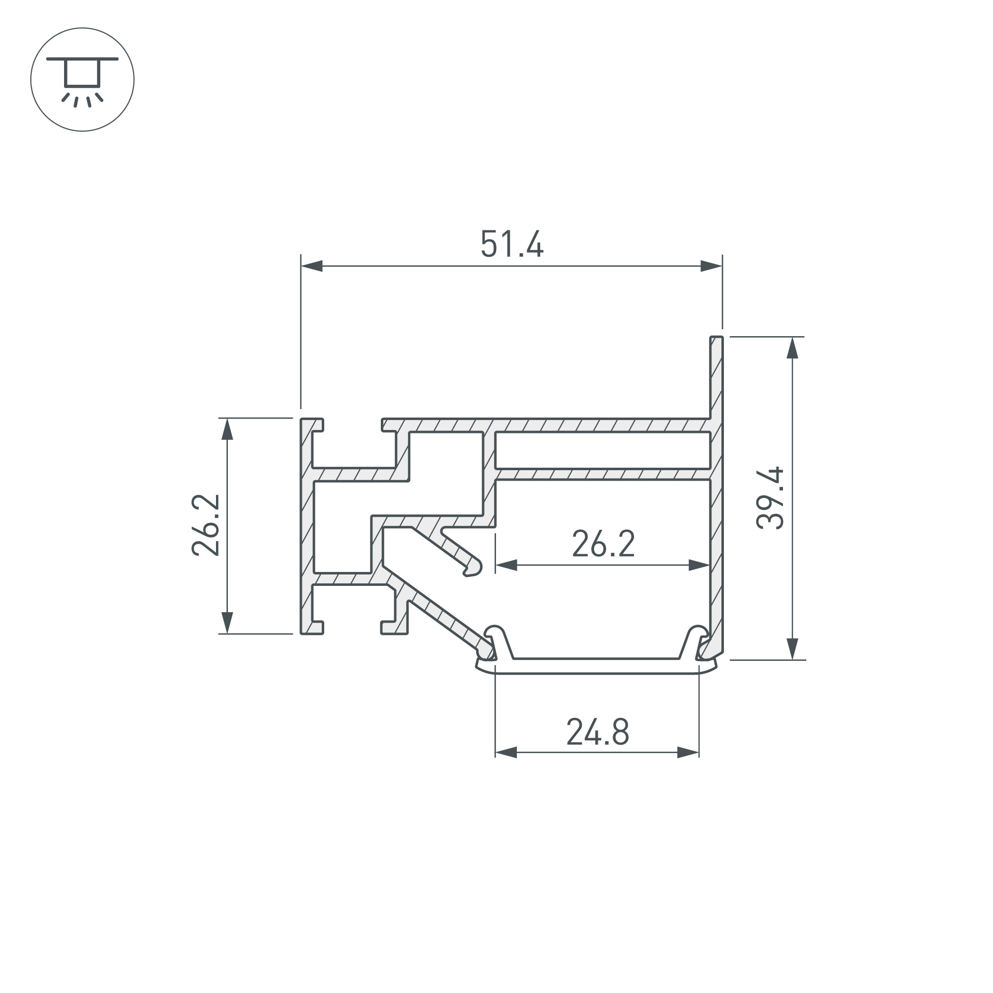 Алюминиевый профиль для натяжных потолков (боковая линия). Решение 2-в-1 - каркас для крепления натяжного потолка и профиль для установки светодиодной ленты. Для дизайнерских решений «линии света» в натяжных потолках. Монтируется к стене накладным способом. Ширина площадки для ленты 26 мм. Длина 2000 мм. Цена за 1 м.