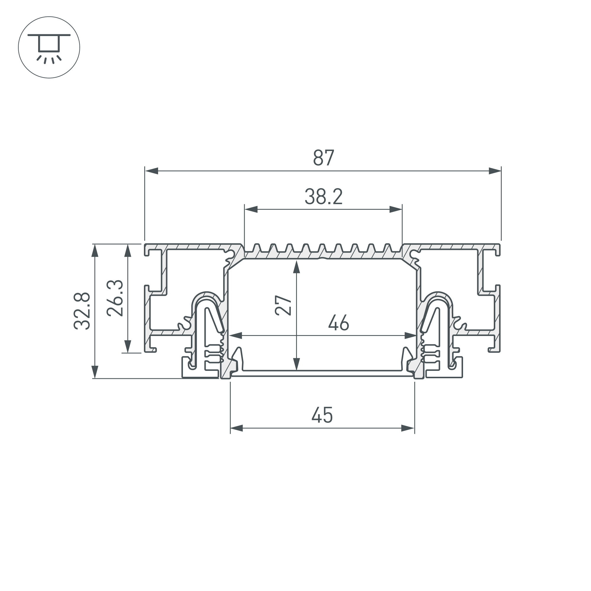 Алюминиевый профиль черного цвета для натяжных потолков (центральная линия). Решение 2-в-1 - каркас для крепления натяжного потолка и профиль для установки светодиодной ленты. Для дизайнерских решений «линии света» в натяжных потолках. Подходит для тканевых и ПВХ потолков. Монтируется к потолку накладным способом. Ширина площадки для ленты 38,3 мм. Длина 2000 мм. Цена за 1 м.