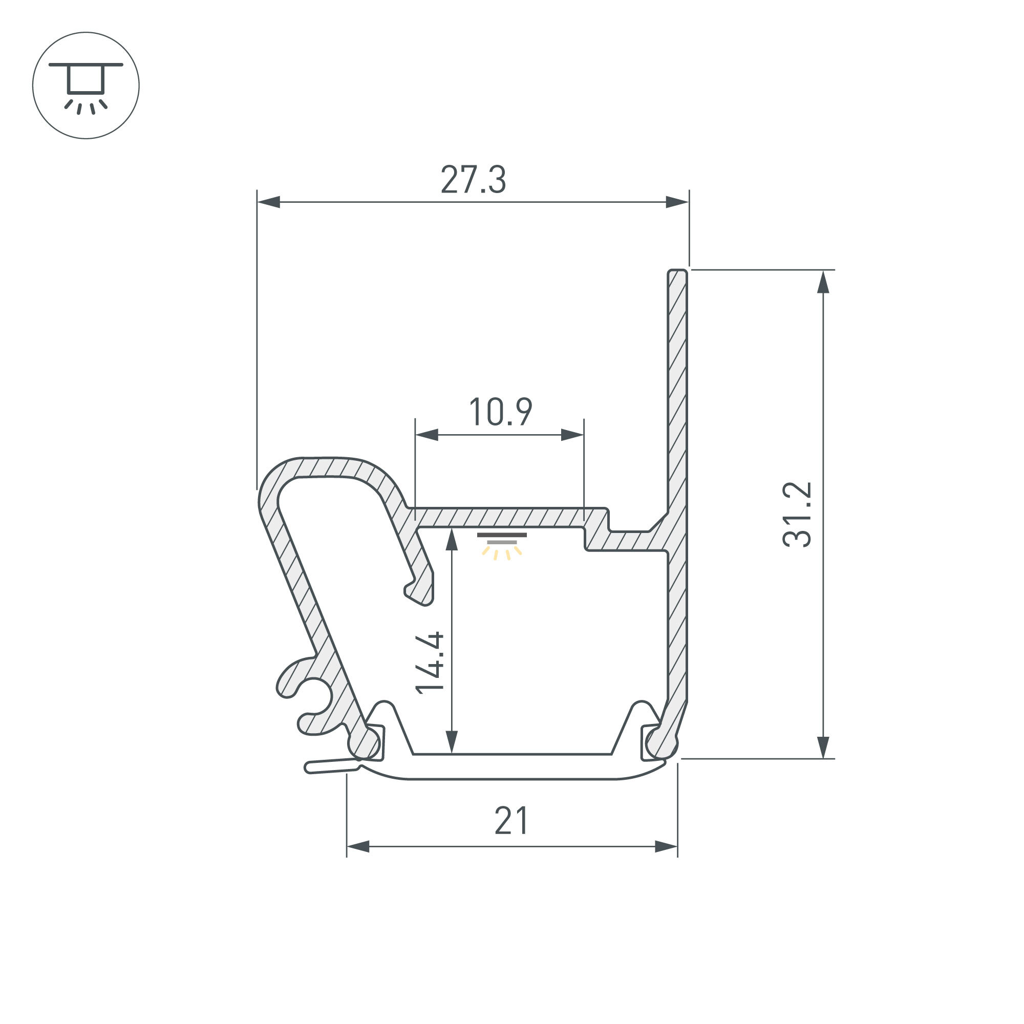 Алюминиевый профиль для натяжных потолков (боковая линия). Решение 2-в-1 - каркас для крепления натяжного потолка и профиль для установки светодиодной ленты. Для дизайнерских решений «линии света» в натяжных потолках. Монтируется к стене накладным способом. Ширина площадки для ленты 10,9 мм. Длина 2000 мм. Цена за 1 м. Профили соединяются между собой стыковочным штифтом (гвоздем) 2,5 мм.