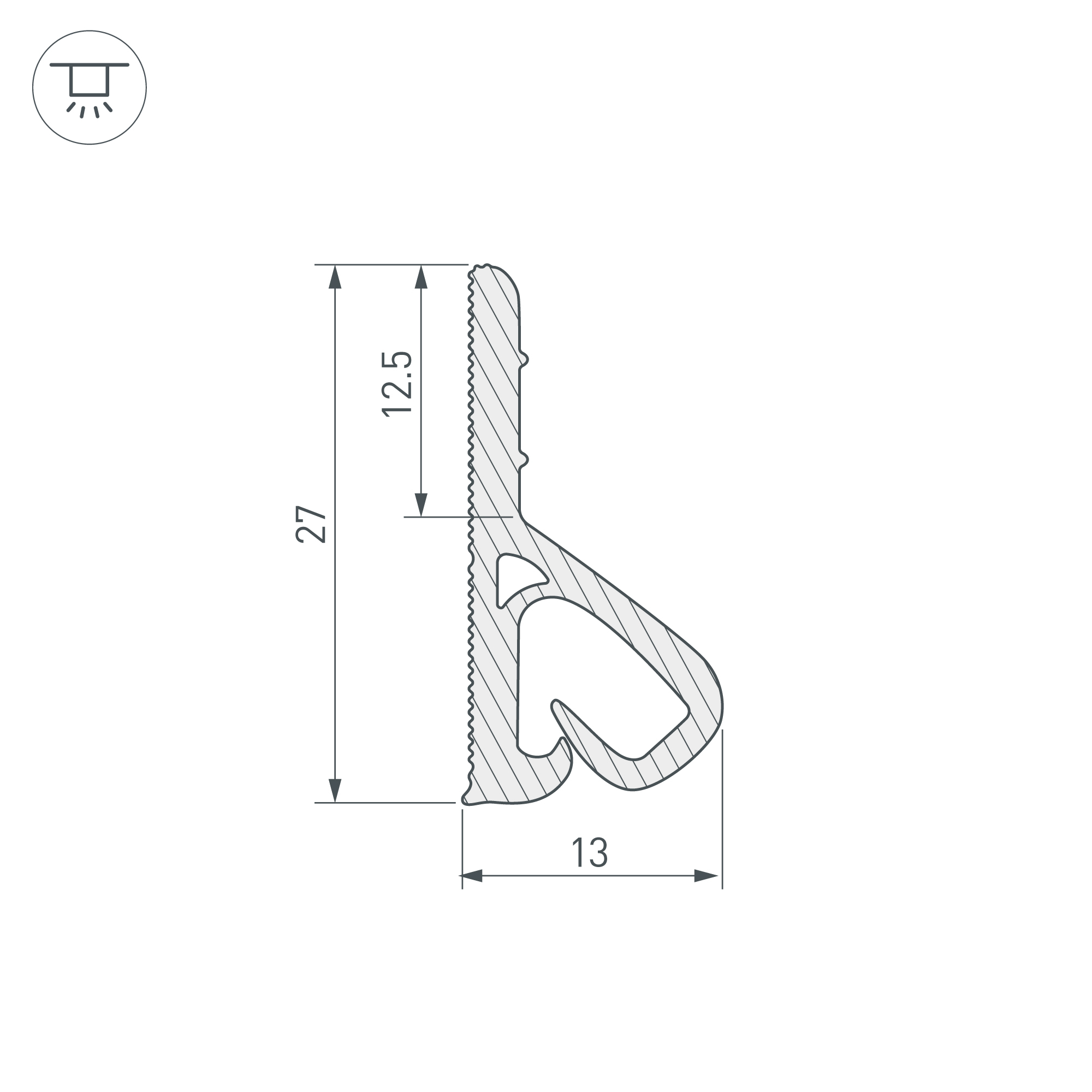 Стеновой ПВХ-профиль "Прищепка" для монтажа тканевых натяжных потолков. Габаритные размеры (L×W×H): 2600x13x27мм. Цена за 1 шт. 2,6 м.