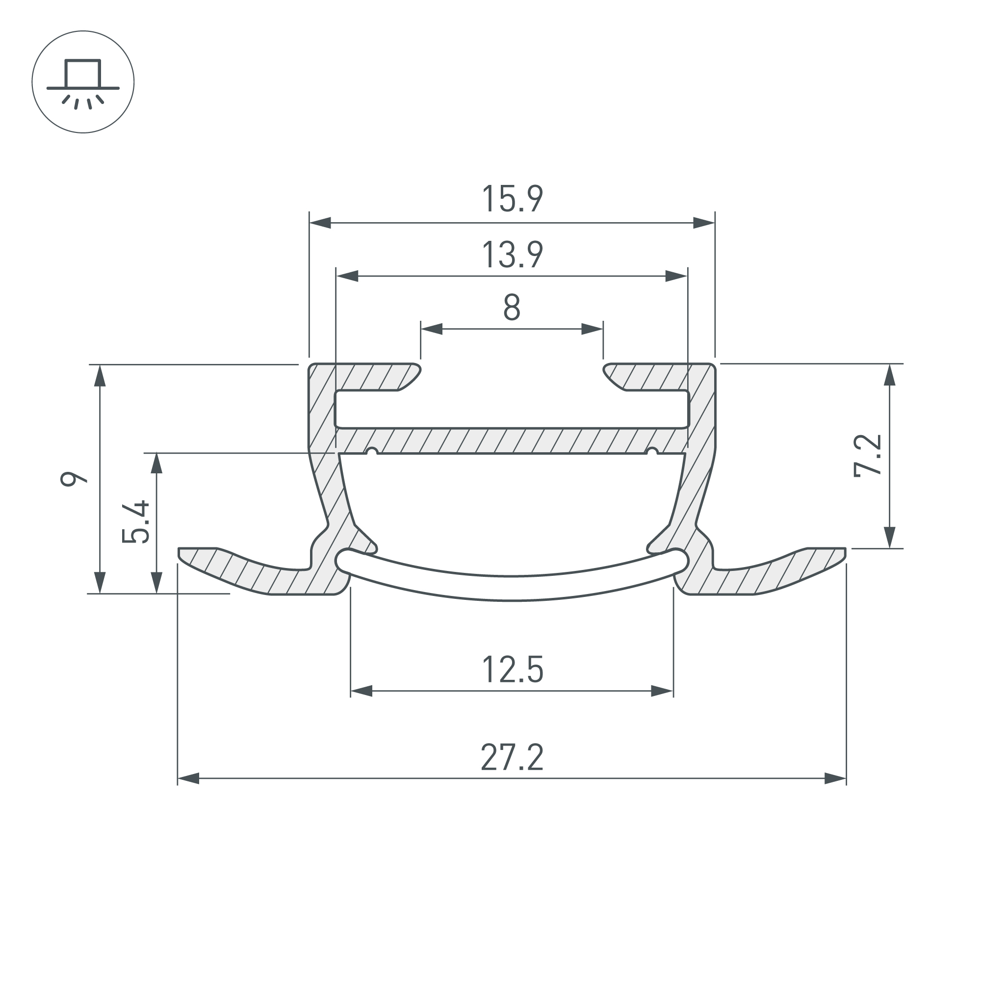 Алюминиевый анодированный профиль для светодиодных лент и линеек. Габаритные размеры (L×W×H): 2000x27,2x9 мм. Ширина площадки для ленты 13,9 мм. Установка в паз шириной 16 мм. Экраны, заглушки и другие аксессуары приобретаются отдельно. Цена за 1 метр.
