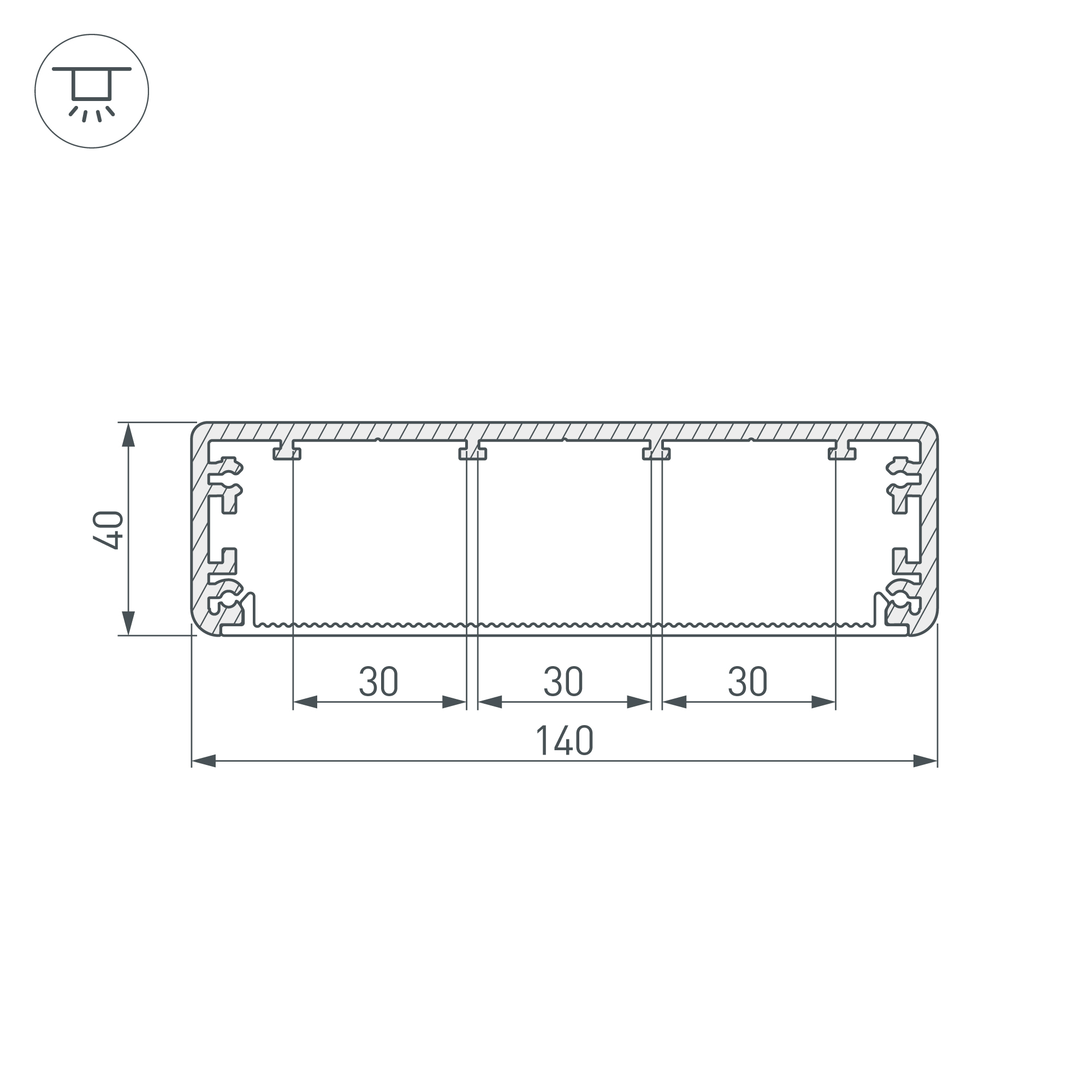 Алюминиевый анодированный профиль для светодиодных лент и линеек. Используется с микропризматическим прозрачным экраном или алюминиевым верхом.Габаритные размеры (L×W×H): 2000x140x40 мм. Ширина площадки для ленты 30 мм. Экраны, заглушки и другие аксессуары приобретаются отдельно. Цена за 1 метр.
