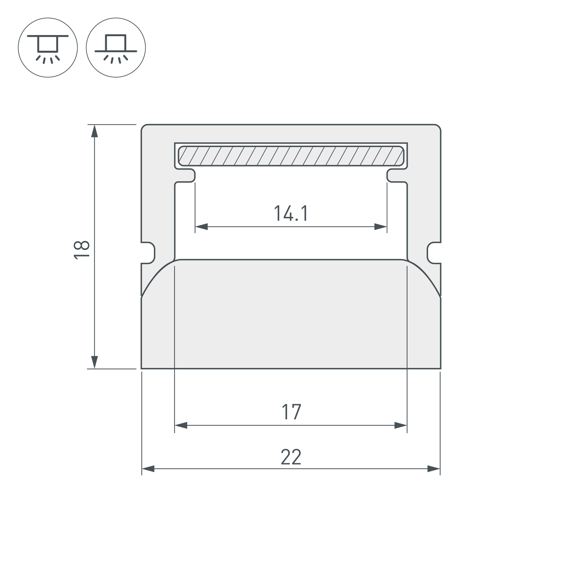 Профиль напольный для влажных помещений IP65 (при соблюдении технологии герметизации). Для установки во влажных помещениях необходима герметизация при помощи двухкомпонентного эпоксидного герметика. Экран белый матовый. В комплекте полоса для лент из анодированного алюминия. Для лент мощностью <10 Вт/м и шириной <14 мм.