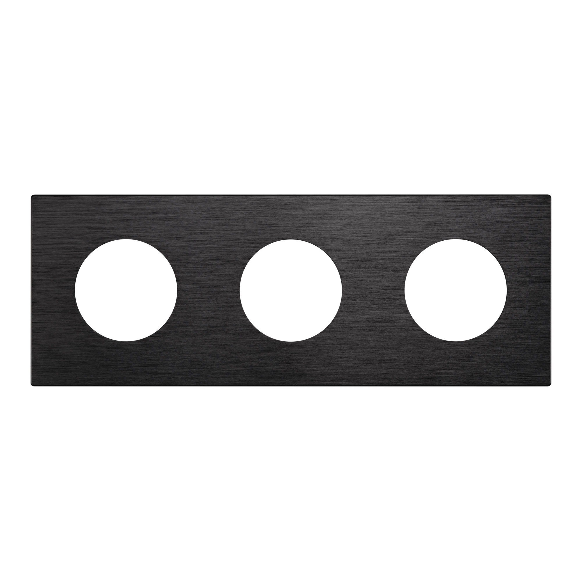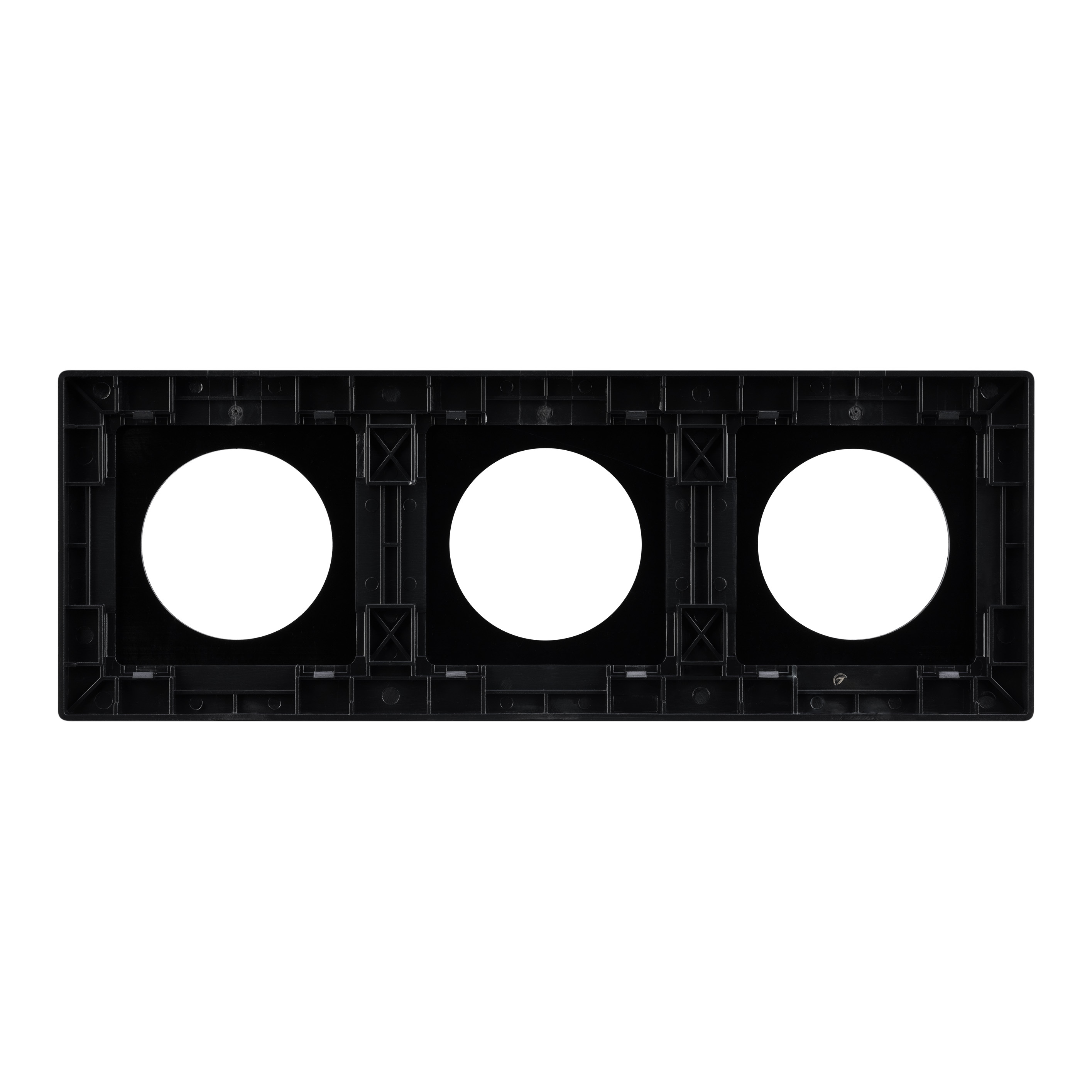 Рамка алюминиевая на 3 поста, под встраиваемый механизм. Вырез под функциональную часть - круг. Цвет - черный. Ориентации монтажа - горизонтальная и вертикальная. Габаритные размеры: длина 224 мм, ширина 82 мм, высота 10 мм. Гарантийный срок 12 мес. Рамка совместима только с механизмами арт. 043739/043740/043741