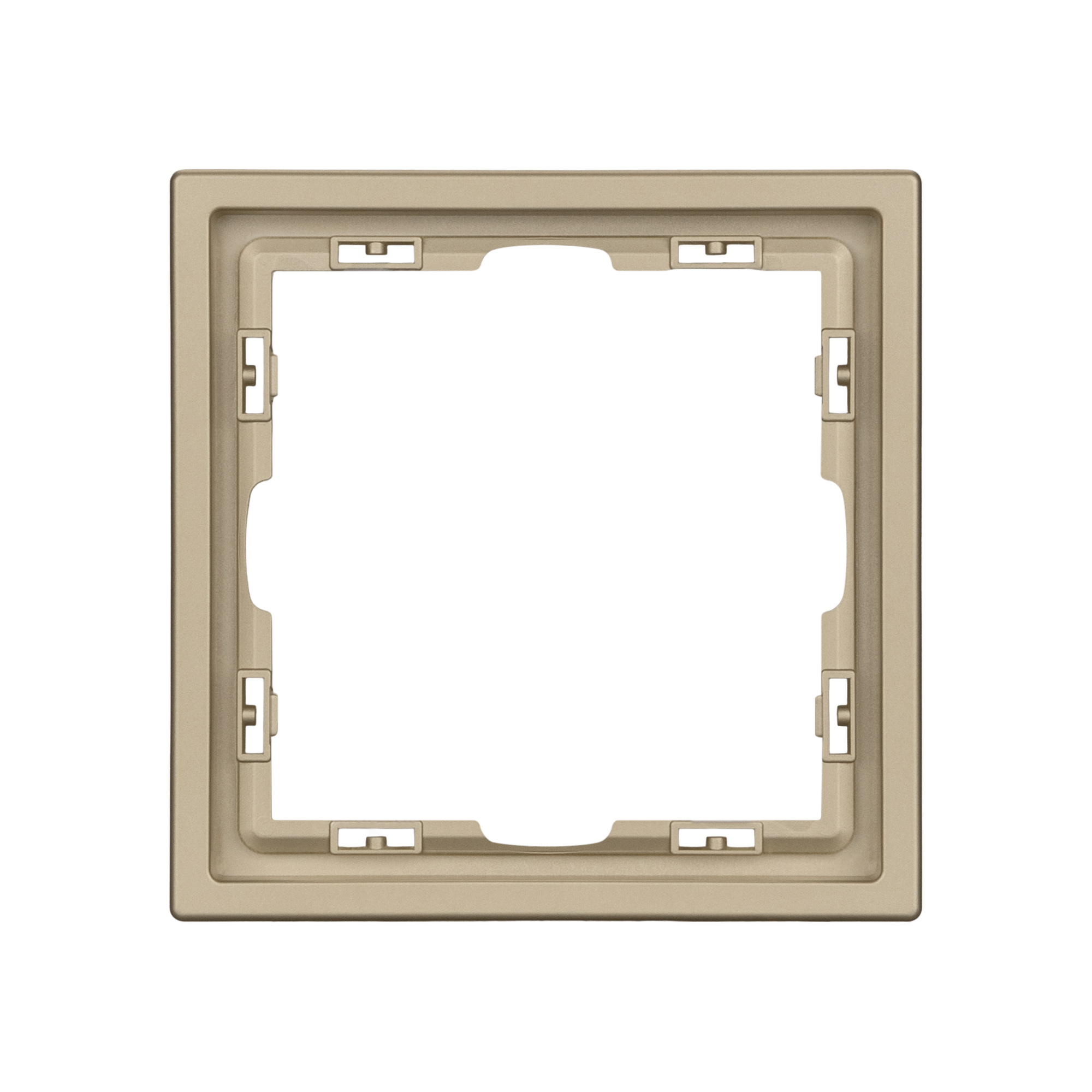 Рамка пластиковая на 1 пост, под встраиваемый механизм. Цвет - золотой, с Soft-Touch покрытием. Среднего уровня герметичности IP20. Ориентация монтажа горизонтальная. Габаритные размеры: длина 81 мм, ширина 81 мм, высота 8,55 мм. Гарантийный срок 12 мес.