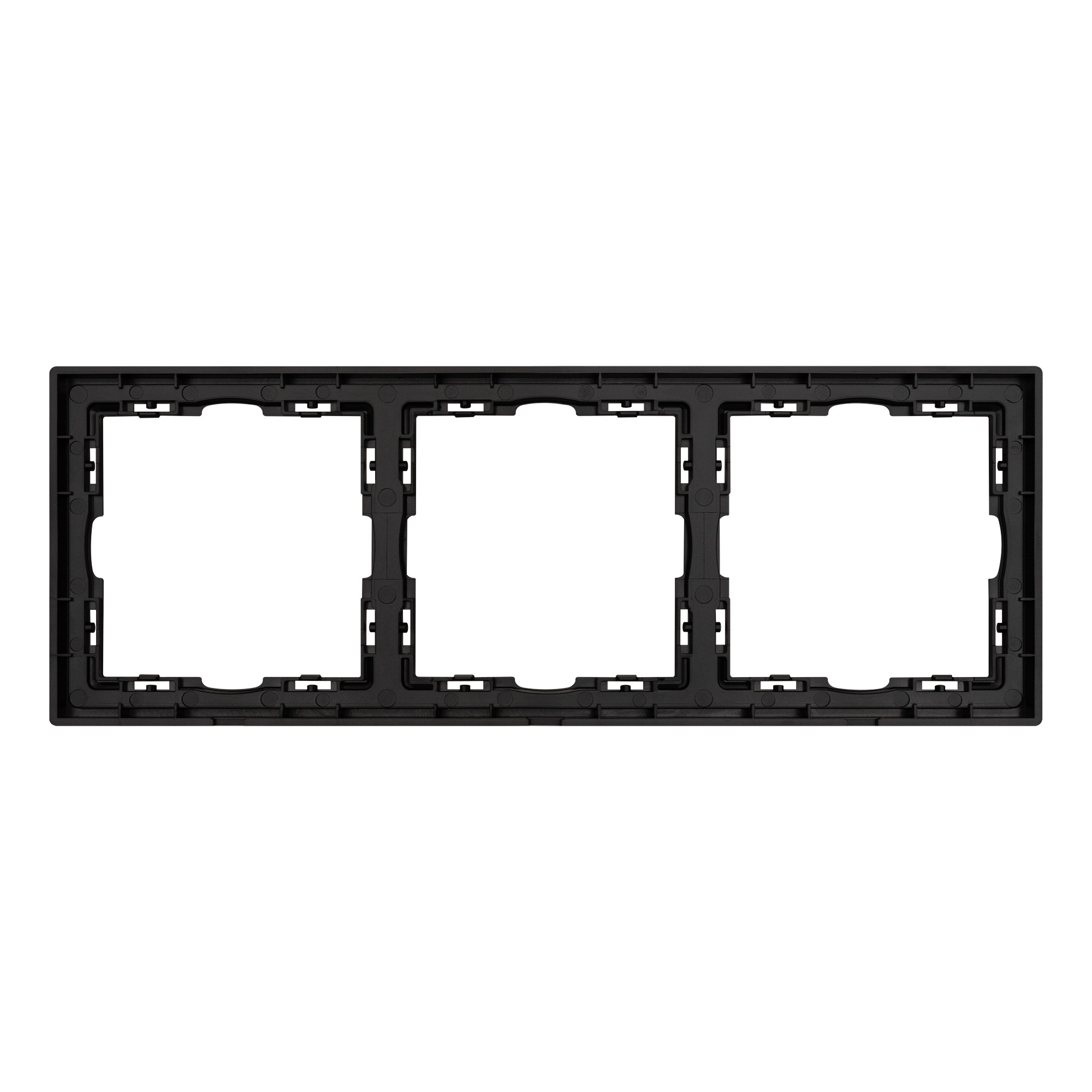 Рамка пластиковая на 3 поста, под встраиваемый механизм. Цвет - черный, с Soft-Touch покрытием. Среднего уровня герметичности IP20. Ориентация монтажа горизонтальная. Габаритные размеры: длина 223 мм, ширина 81 мм, высота 8.55 мм. Гарантийный срок 12 мес.