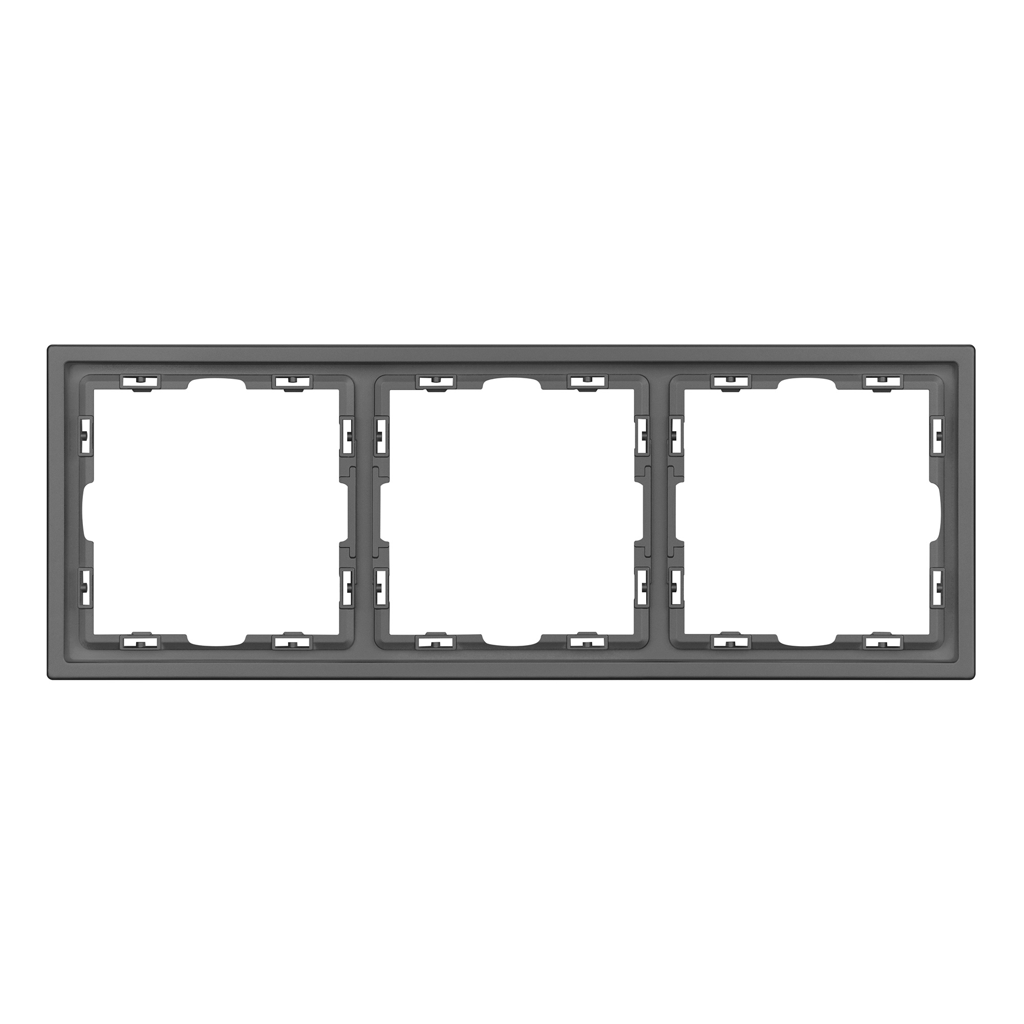 Рамка пластиковая на 3 поста, под встраиваемый механизм. Цвет - серый, с Soft-Touch покрытием. Среднего уровня герметичности IP20. Ориентация монтажа горизонтальная. Габаритные размеры: длина 223 мм, ширина 81 мм, высота 8.55 мм. Гарантийный срок 12 мес.