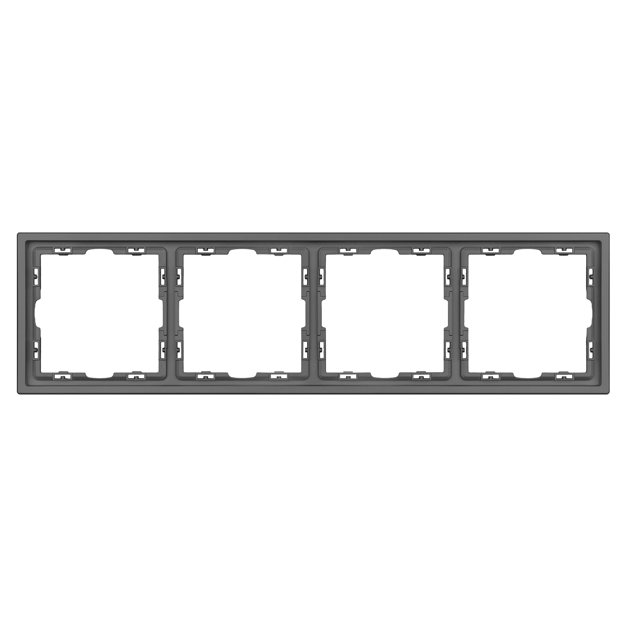 Рамка пластиковая на 4 поста, под встраиваемый механизм. Цвет - серый, с Soft-Touch покрытием. Среднего уровня герметичности IP20. Ориентация монтажа горизонтальная. Габаритные размеры: длина 294 мм, ширина 81 мм, высота 8.55 мм. Гарантийный срок 12 мес.