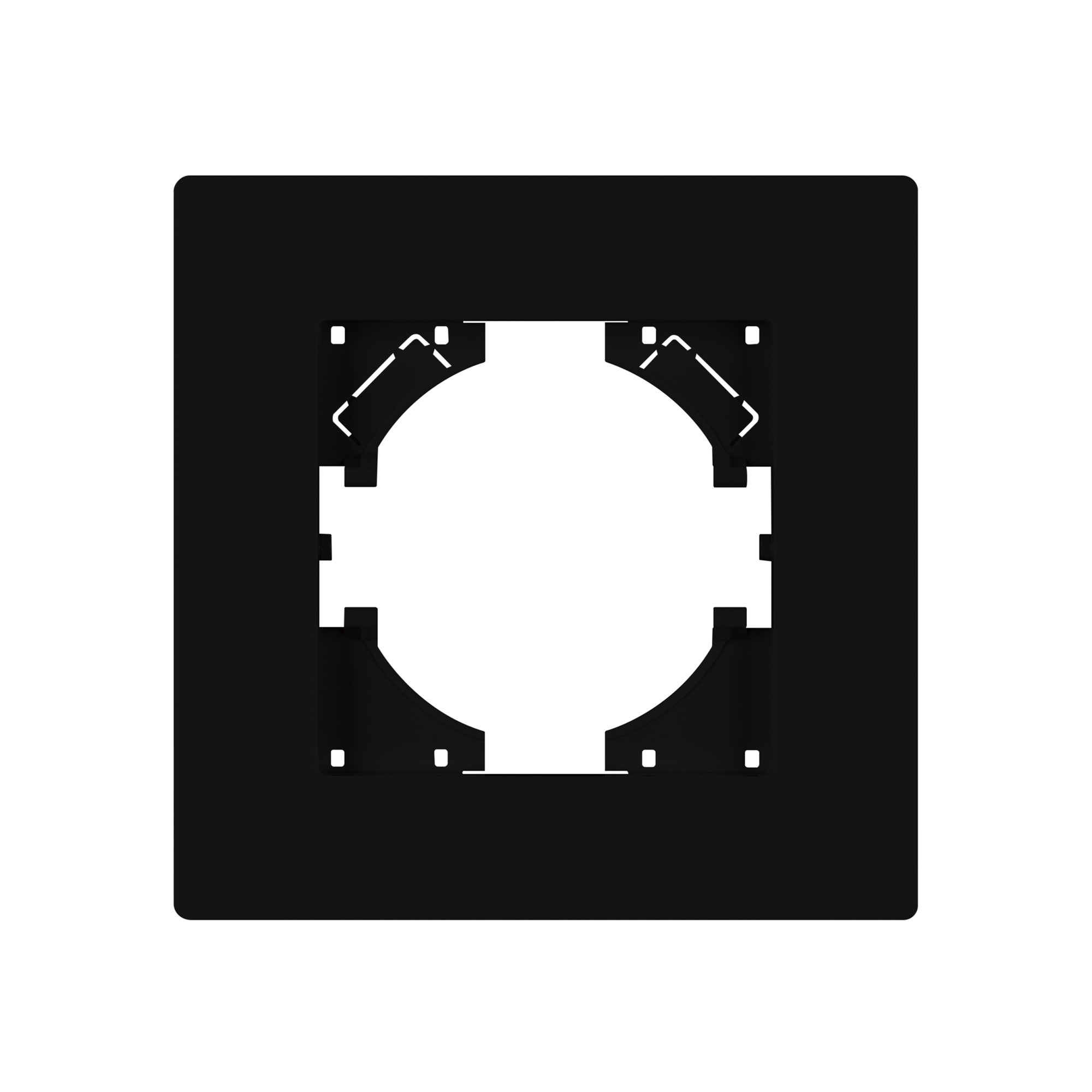 Рамка пластиковая на 1 пост, под встраиваемый механизм. Цвет - черный. Среднего уровня герметичности IP20. Ориентация монтажа - горизонтальная (основным ориентиром служат посадочные выступы для накладки механизма). Габаритные размеры: длина 86 мм, ширина 86 мм, высота 7 мм. Гарантийный срок 12 мес.