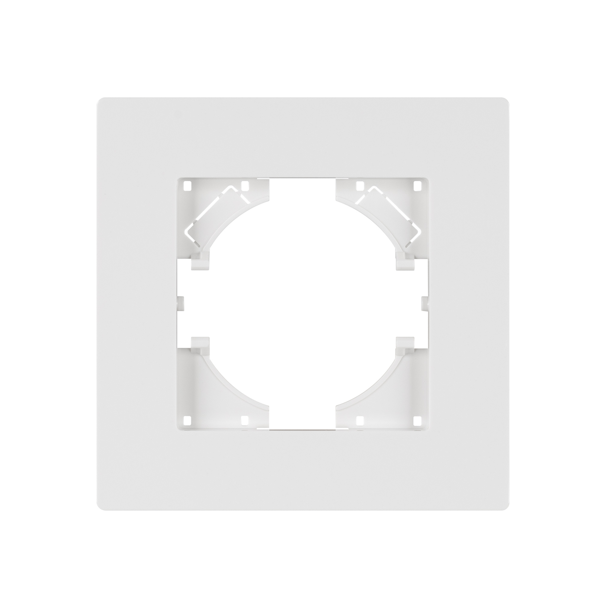 Рамка пластиковая на 1 пост, под встраиваемый механизм. Цвет - белый. Среднего уровня герметичности IP20. Ориентация монтажа - горизонтальная (основным ориентиром служат посадочные выступы для накладки механизма). Габаритные размеры: длина 86 мм, ширина 86 мм, высота 7 мм. Гарантийный срок 12 мес.