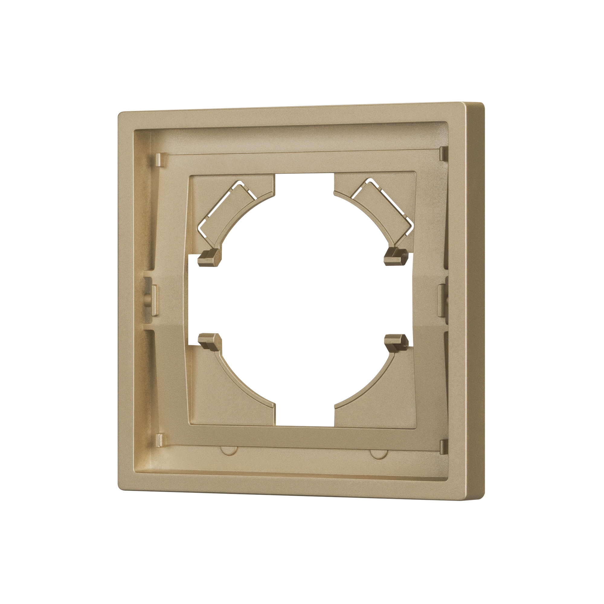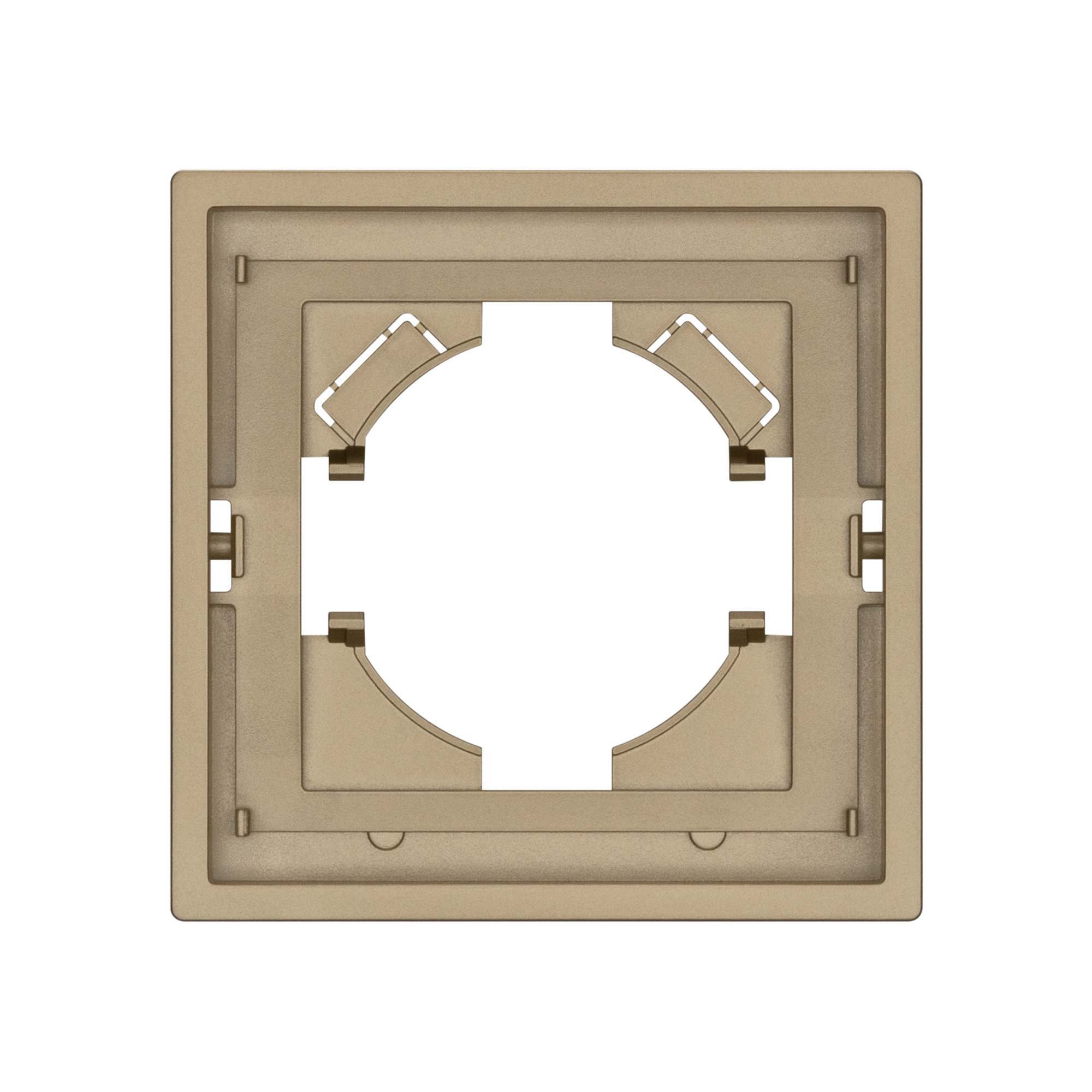 Рамка пластиковая на 1 пост, под встраиваемый механизм. Цвет - золотой, с Soft-Touch покрытием. Среднего уровня герметичности IP20. Ориентация монтажа горизонтальная. Габаритные размеры: длина 80 мм, ширина 80 мм, высота 9 мм. Гарантийный срок 12 мес.