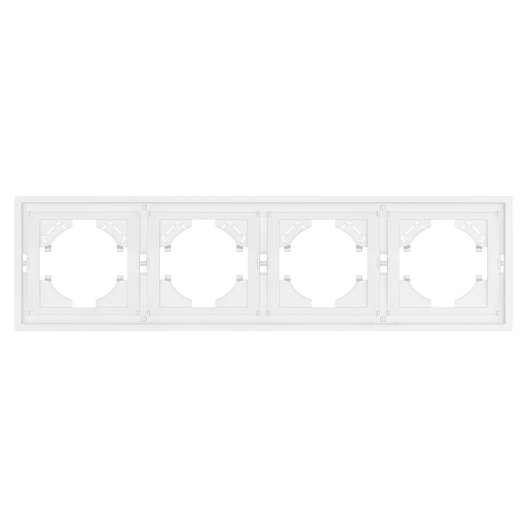Рамка пластиковая на 4 поста, под встраиваемый механизм. Цвет - белый, с Soft-Touch покрытием. Среднего уровня герметичности IP20. Ориентация монтажа горизонтальная. Габаритные размеры: длина 294 мм, ширина 80 мм, высота 9 мм. Гарантийный срок 12 мес.