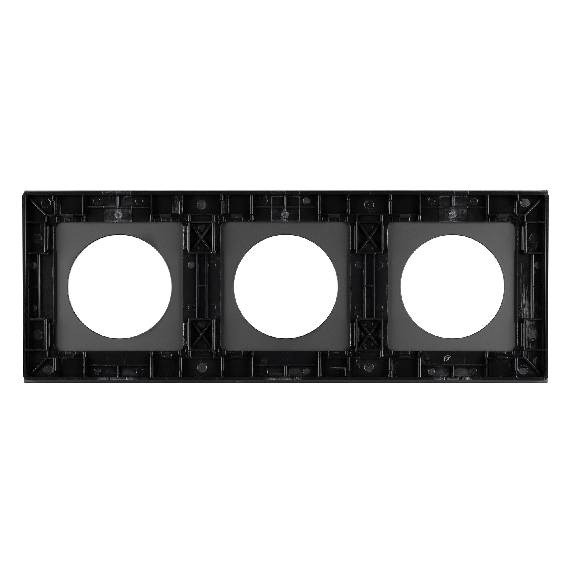 Рамка стеклянная на 3 поста, под встраиваемый механизм. Вырез под функциональную часть круг. Цвет - черный. Ориентации монтажа - горизонтальная. Габаритные размеры: длина 224 мм, ширина 82 мм, высота 10 мм. Гарантийный срок 12 мес. Рамка совместима только с механизмами арт. 043740/043739/043741