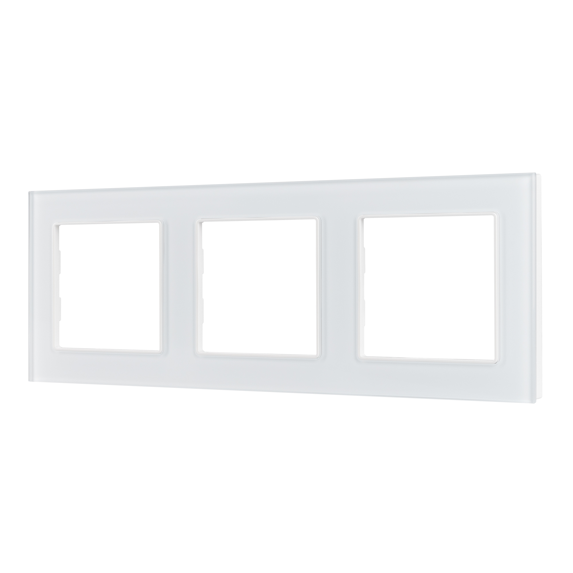 Рамка стеклянная на 3 поста, под встраиваемый механизм (квадрат). Цвет - белый. Ориентации монтажа - горизонтальная. Габаритные размеры: длина 224 мм, ширина 82 мм, высота 10 мм. Гарантийный срок 12 мес.