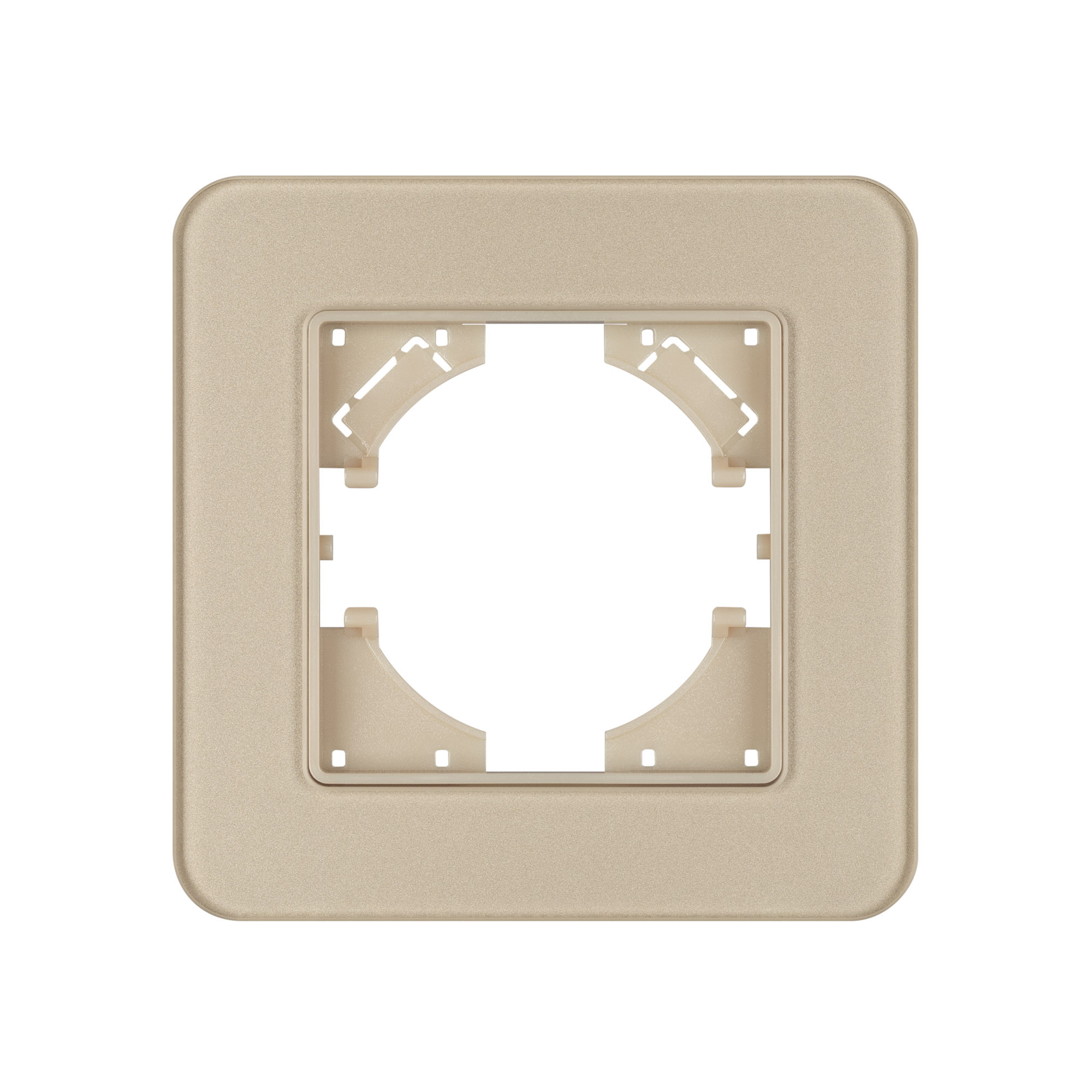 Рамка стеклянная на 1 пост, под встраиваемый механизм. Цвет - золотой. Среднего уровня герметичности IP20. Ориентация монтажа - горизонтальная (основным ориентиром служат посадочные выступы для накладки механизма). Габаритные размеры: длина 86 мм, ширина 86 мм, высота 7 мм. Гарантийный срок 12 мес.