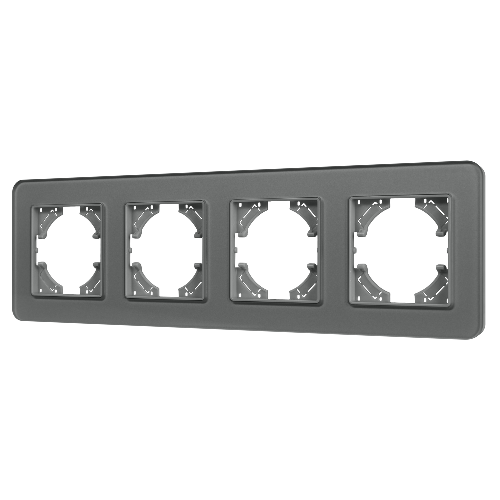 Рамка стеклянная на 4 поста, под встраиваемый механизм. Цвет - серый. Среднего уровня герметичности IP20. Ориентация монтажа - горизонтальная (основным ориентиром служат посадочные выступы для накладки механизма). Габаритные размеры: длина 299 мм, ширина 86 мм, высота 7 мм. Гарантийный срок 12 мес..