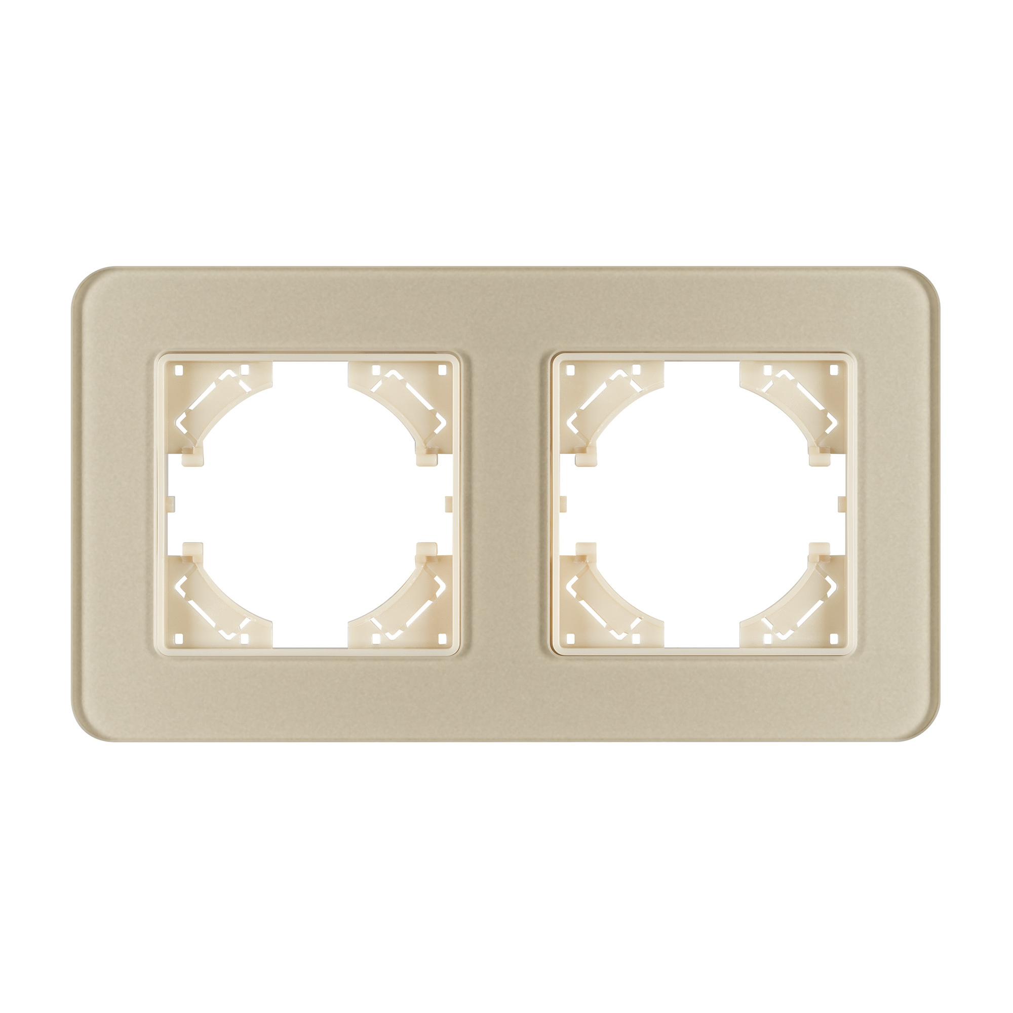 Рамка стеклянная на 2 поста, под встраиваемый механизм. Цвет - золотой с Soft-Touch покрытием. Среднего уровня герметичности IP20. Ориентация монтажа - горизонтальная (основным ориентиром служат посадочные выступы для накладки механизма). Габаритные размеры: длина 157 мм, ширина 86 мм, высота 7 мм. Гарантийный срок 12 мес.