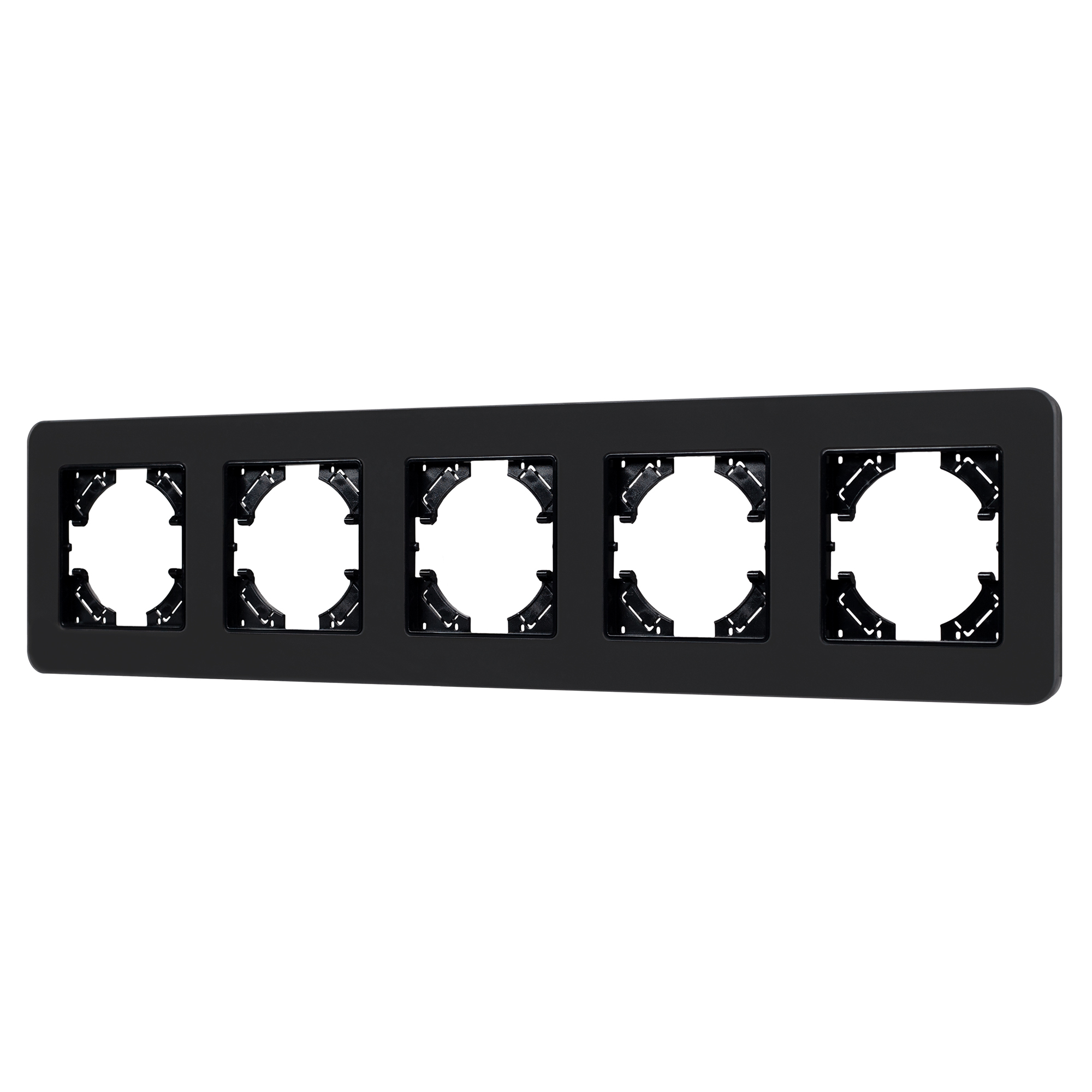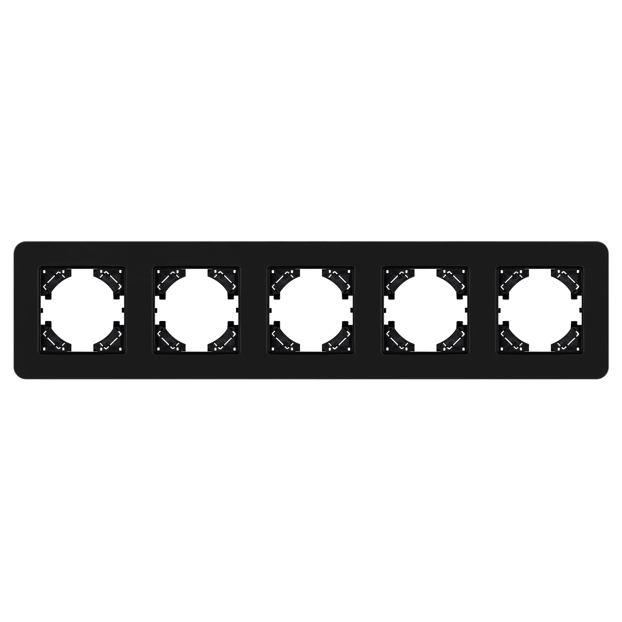 Рамка стеклянная на 5 постов, под встраиваемый механизм. Цвет - черный с Soft-Touch покрытием. Среднего уровня герметичности IP20. Ориентация монтажа - горизонтальная (основным ориентиром служат посадочные выступы для накладки механизма). Габаритные размеры: длина 370 мм, ширина 86 мм, высота 7 мм. Гарантийный срок 12 мес.