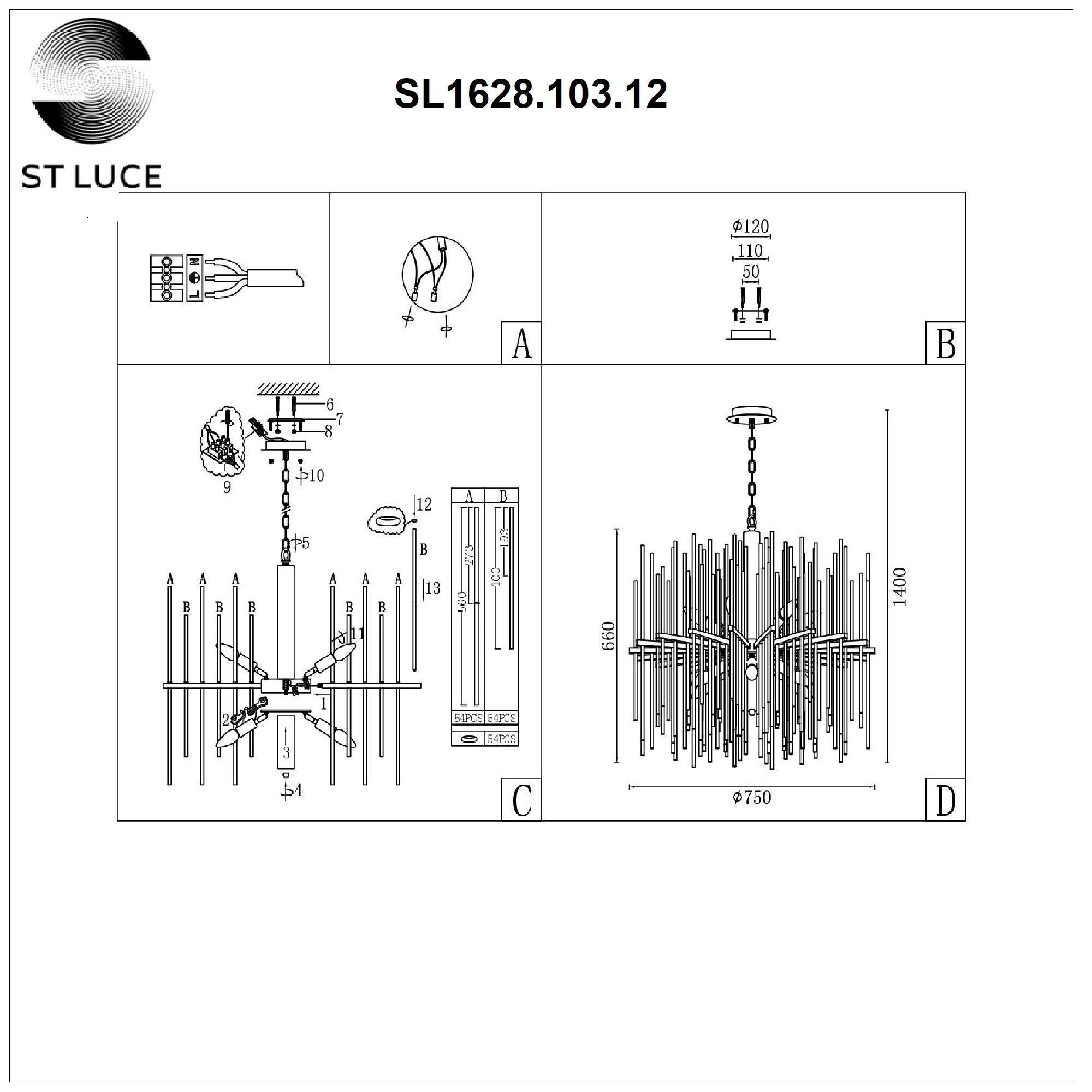 SL1628.103.12 Люстра подвесная ST-Luce Хром/Прозрачный, Хром E14 12*40W