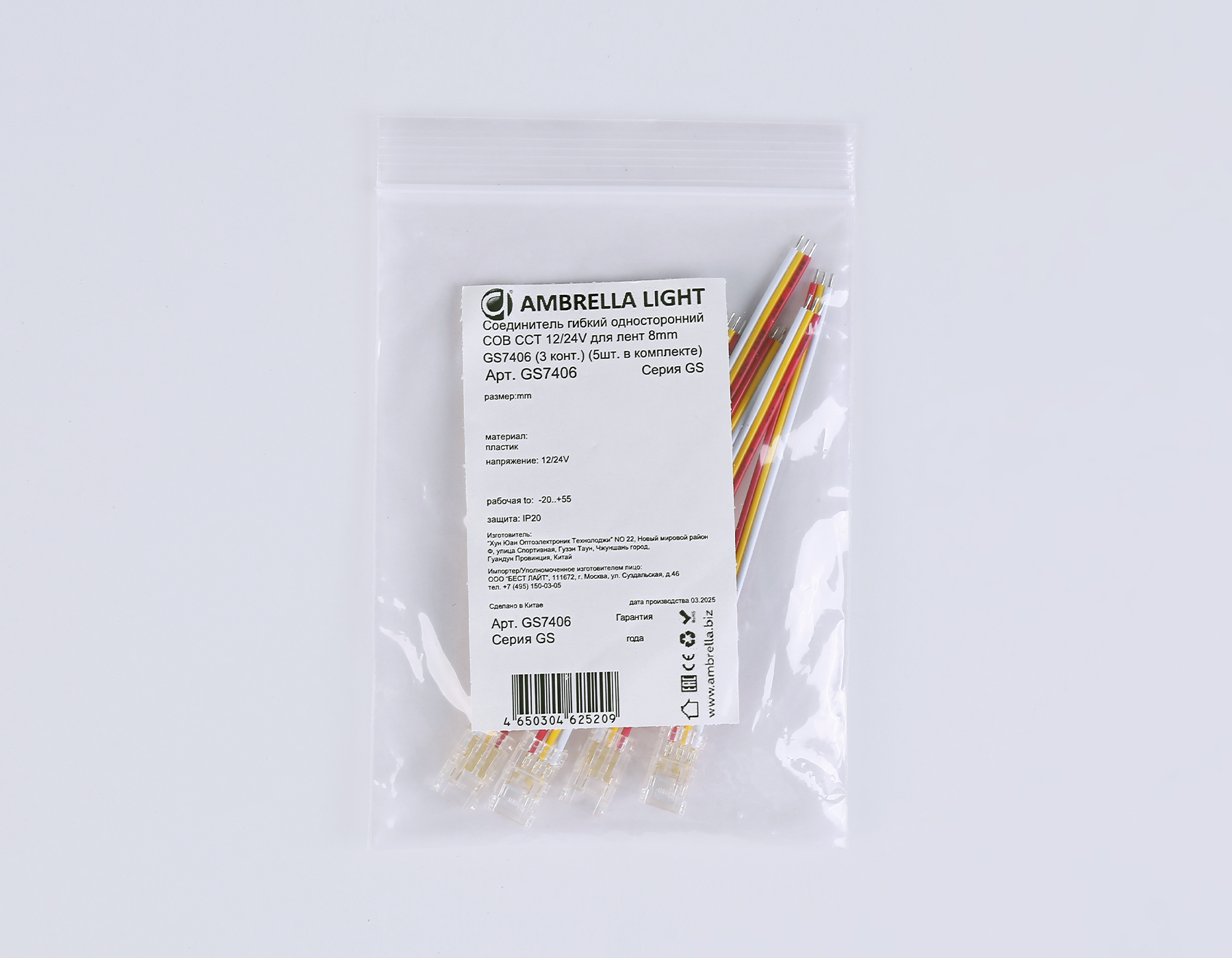 Соединитель гибкий односторонний COB CCT 12/24V для лент 8mm GS7406 (3 конт.) (5шт. в комплекте)