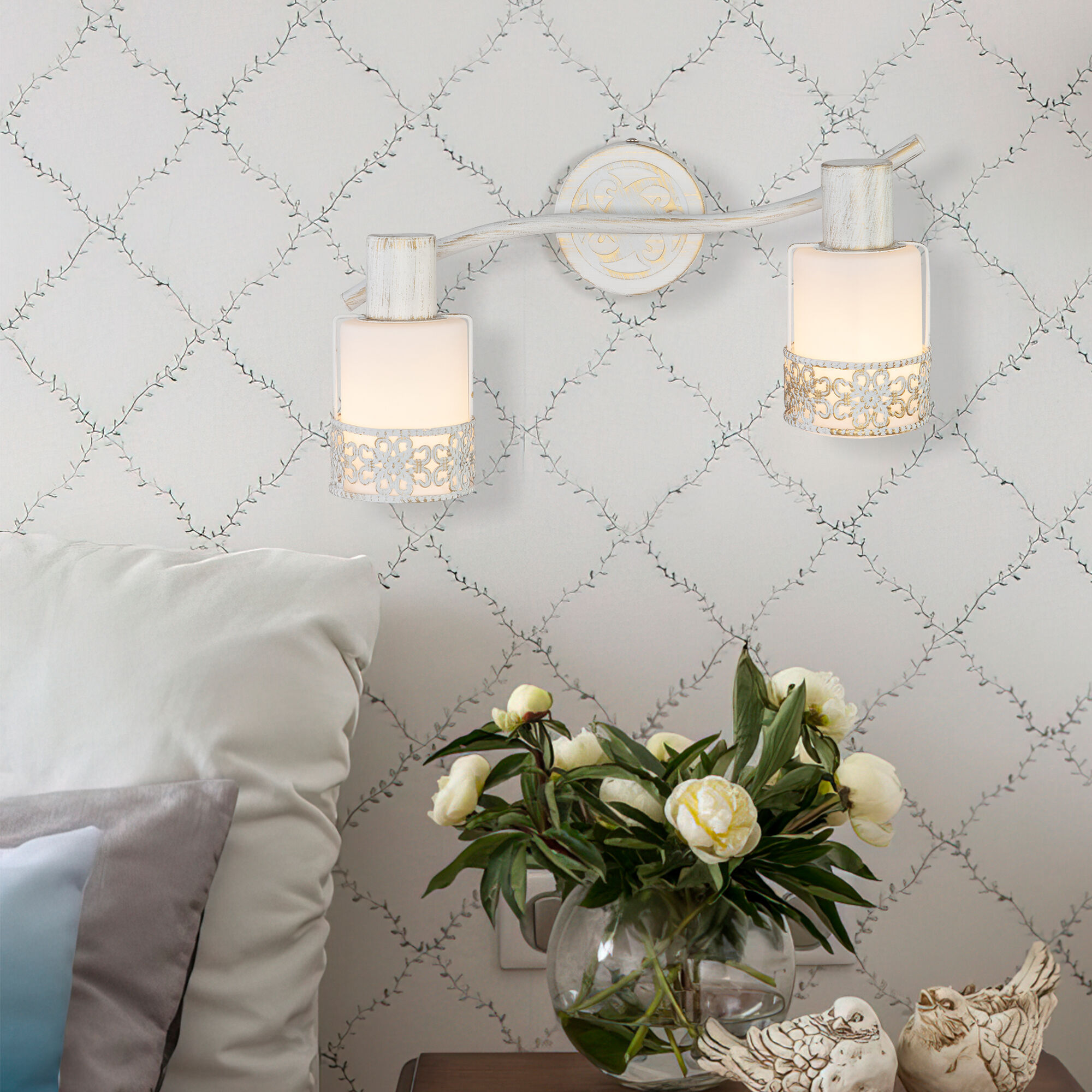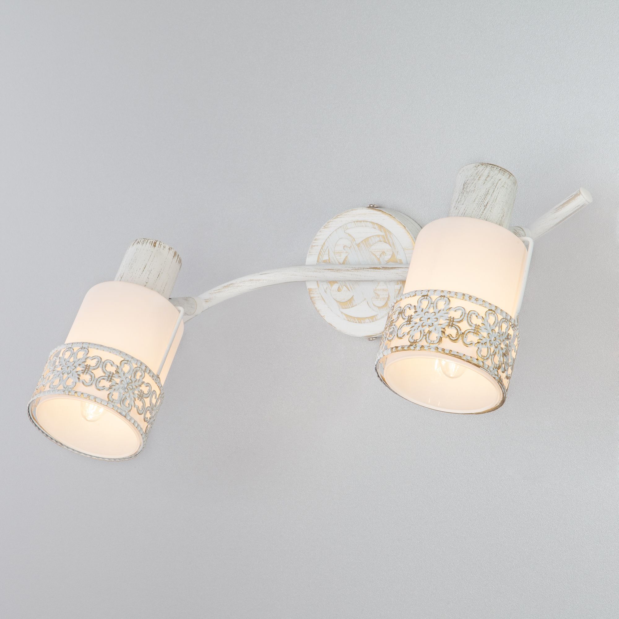 Спот с поворотными плафонами 20025/2 белый с золотом создаст качественное дополнительное освещение и станет эффектным дополнением к основному источнику света. Благодаря декоративным стеклянным плафонам создает мягкое равномерное свечение В качестве источника света используются сменные лампы типа "Свеча" или "Шар" с цоколем E14.