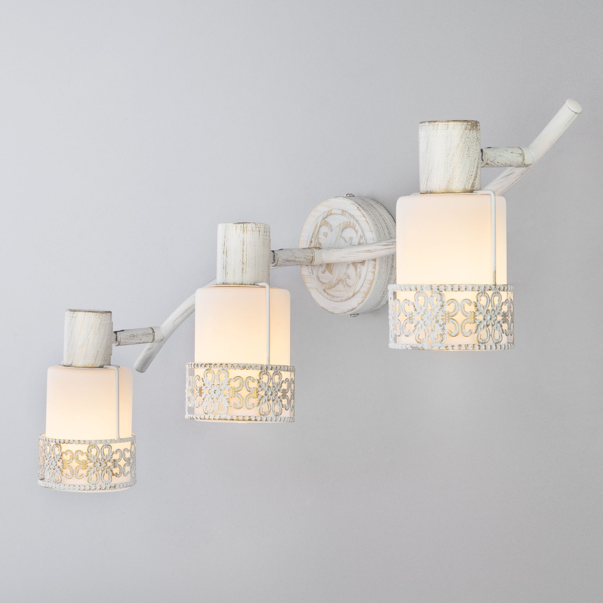 Спот с поворотными плафонами 20025/3 белый с золотом создаст качественное дополнительное освещение и станет эффектным дополнением к основному источнику света. Благодаря декоративным стеклянным плафонам спот создает мягкое равномерное свечение. В качестве источника света используются сменные лампы типа "Свеча" или "Шар" с цоколем E14. Патрон рассчитан на максимальную мощность ламп накаливания 40 Вт.