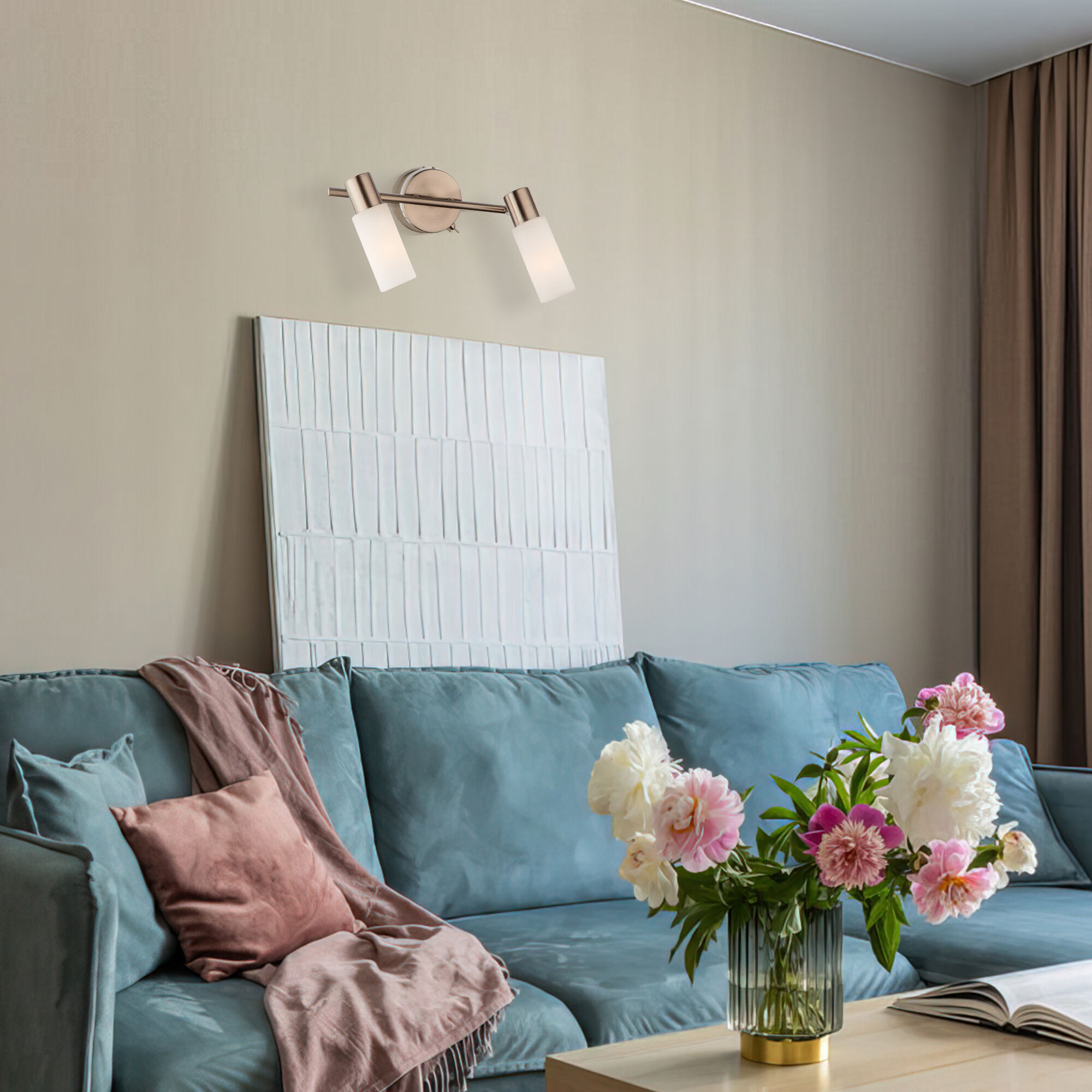 Спот с поворотными плафонами 20043/2 сатин-никель из коллекции Madison создаст качественное дополнительное освещение и станет эффектным дополнением к основному источнику света. Благодаря декоративному стеклянному плафону бра создает мягкое равномерное свечение.